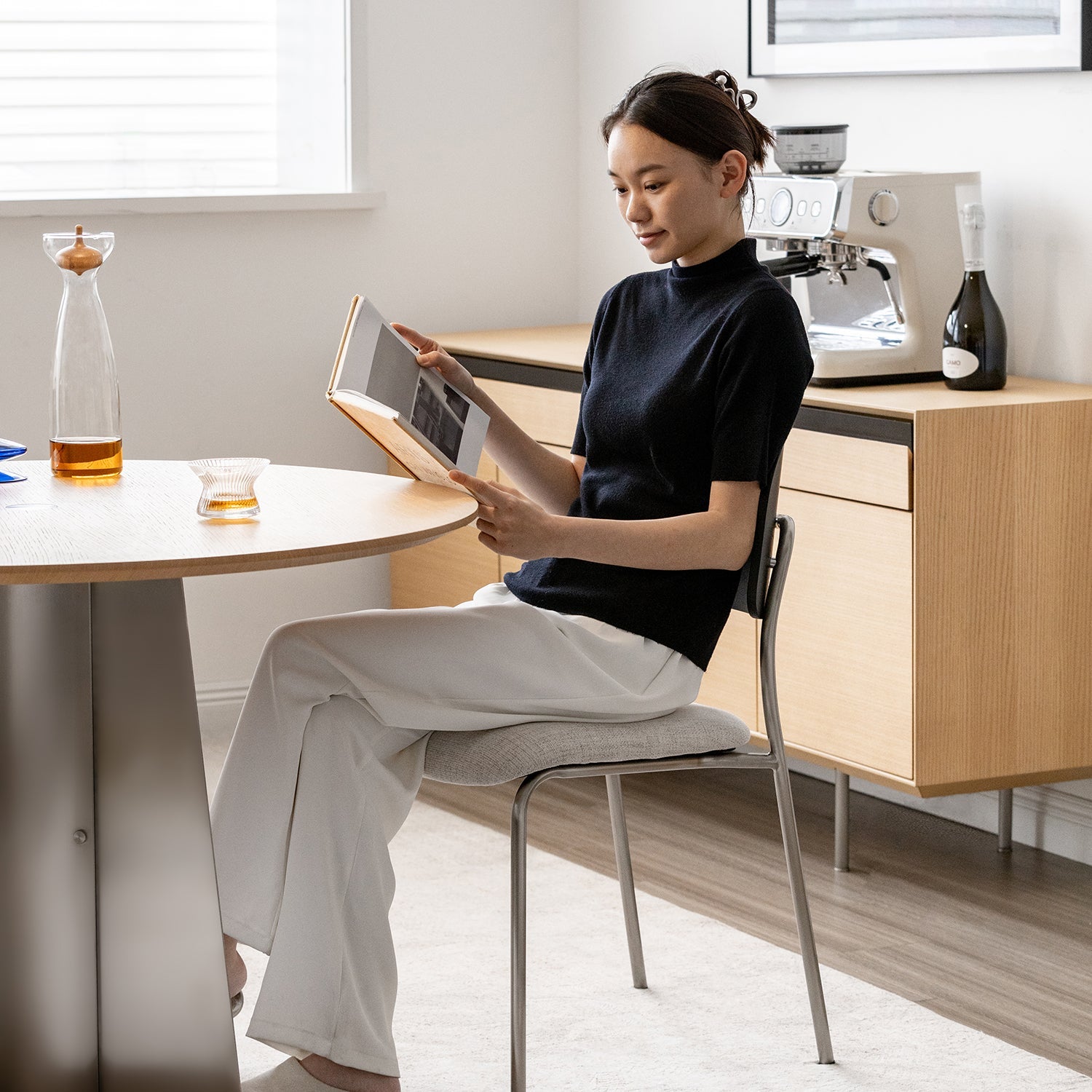 The gently curved backrest supports the natural shape of your spine, offering comfortable seating for everyday dining and long conversations. |