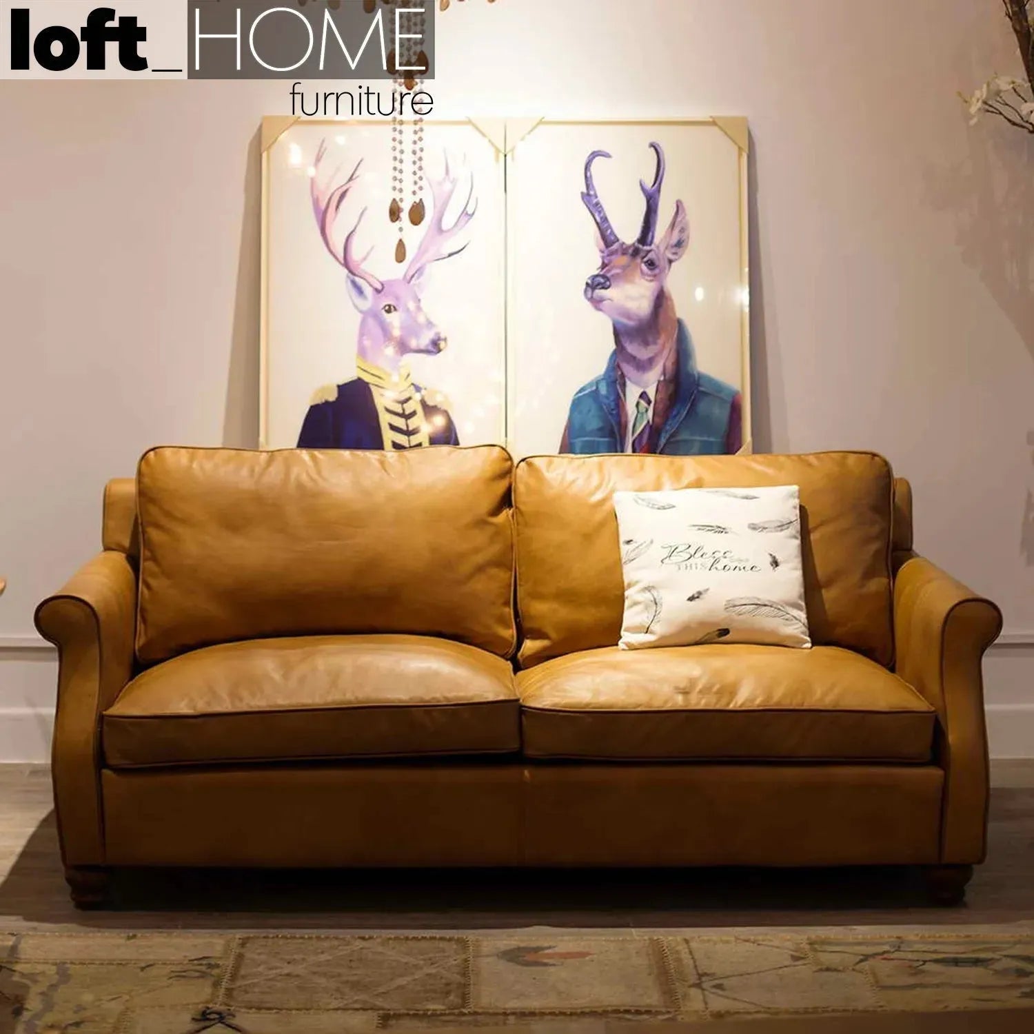 Delineate the enduring class and the homey effect of Vintage Genuine Leather 3-seater Sofa. The three-seater sofa is made from premium genuine brown leather that suits perfectly to give you a luxury feel, and its full grain texture ensures durability and an untimely classiness. Alloy springs suspension in the sofa provides the best support against sagging, making the sofa more durable.