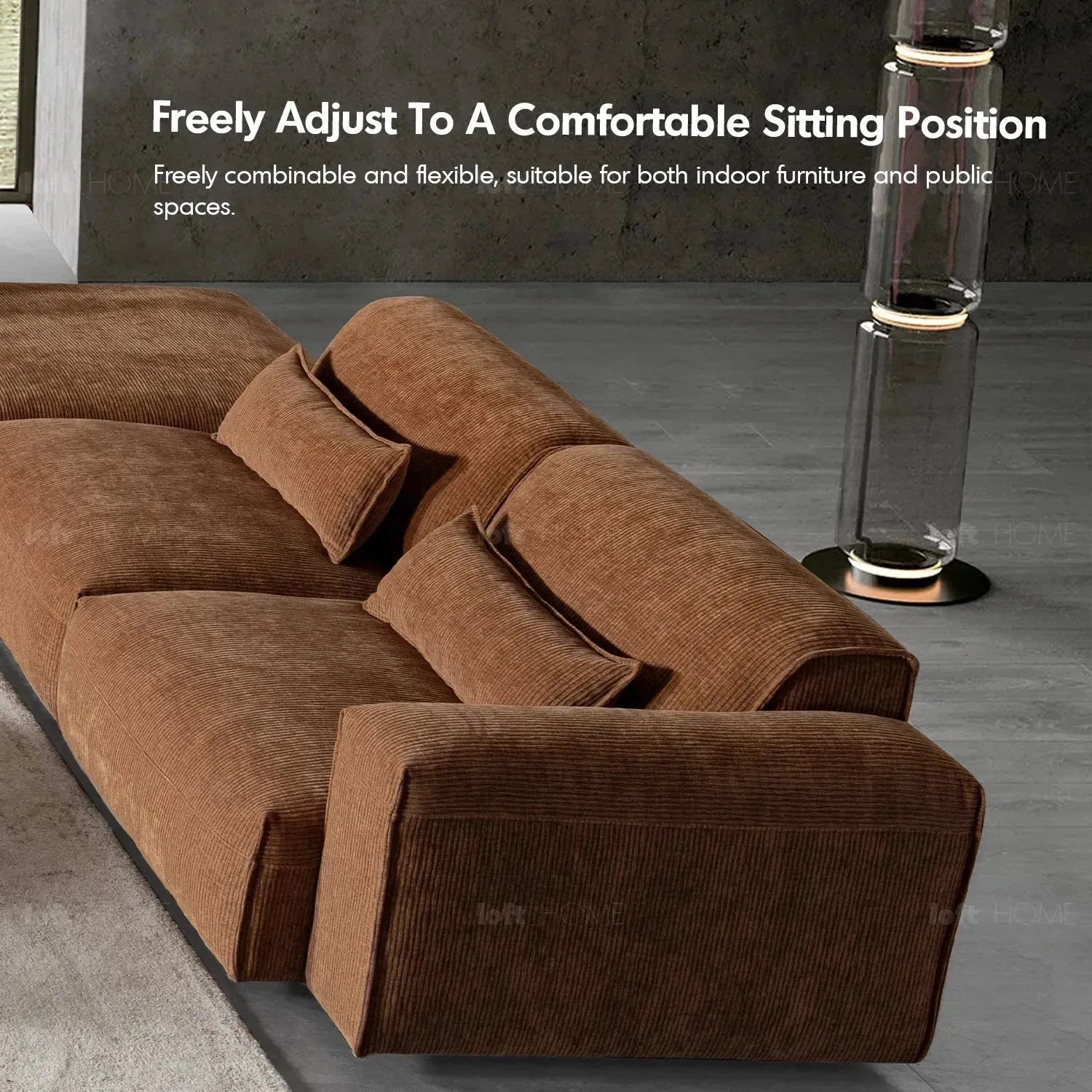 The Modern Corduroy Velvet Fabric Modular 3 Seater Sofa OPERA Sofa offers durable stability and plush support, making it both stylish and versatile. Its sturdy construction provides long-lasting comfort for your living space. Elevate your home decor with the timeless sophistication of OPERA.