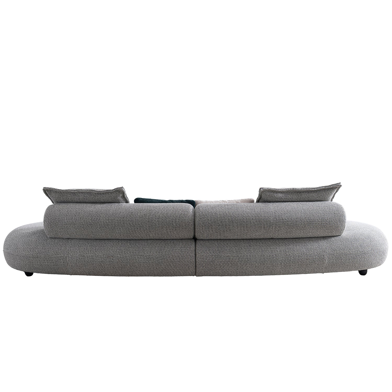 Cream Mixed Weave Fabric 6 Seater Sofa CURVO design in light gray mixed weave fabric with 3 soft cushions and a curved silhouette—perfect for stylish, cream-inspired modern interiors.