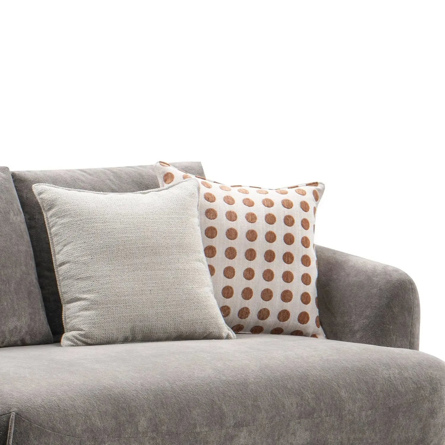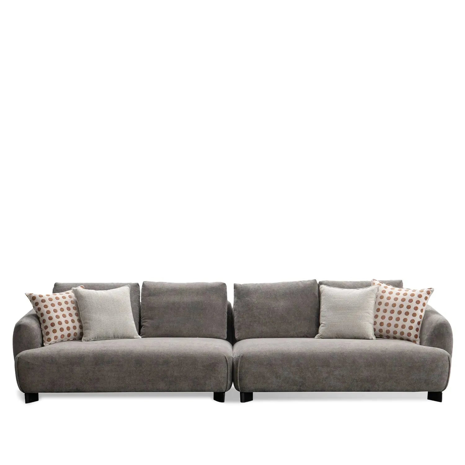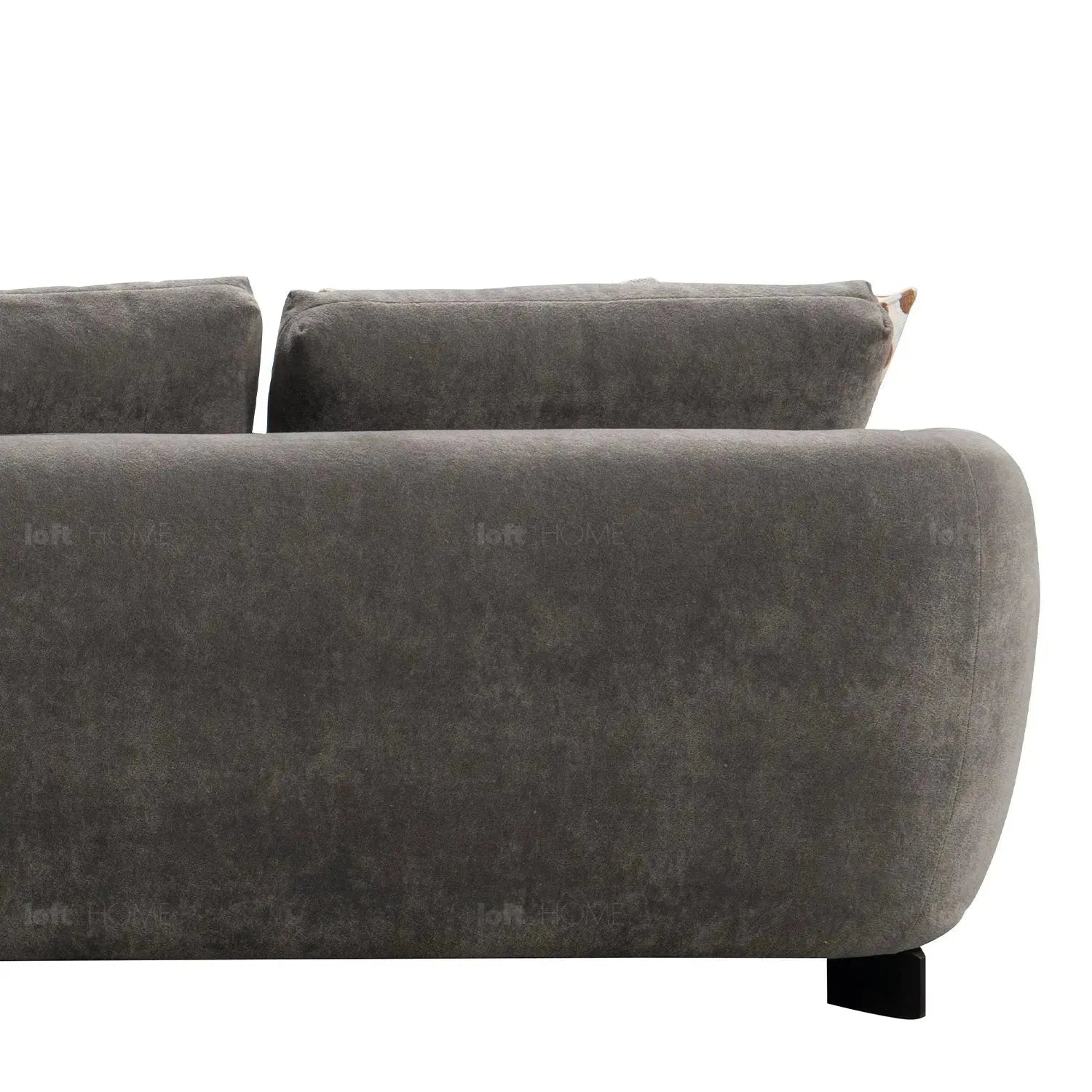 The sofa's rounded design features smooth, elegant lines that create a graceful and flowing aesthetic. This design element enhances the overall visual appeal and complements a variety of interior styles, from modern to traditional. |