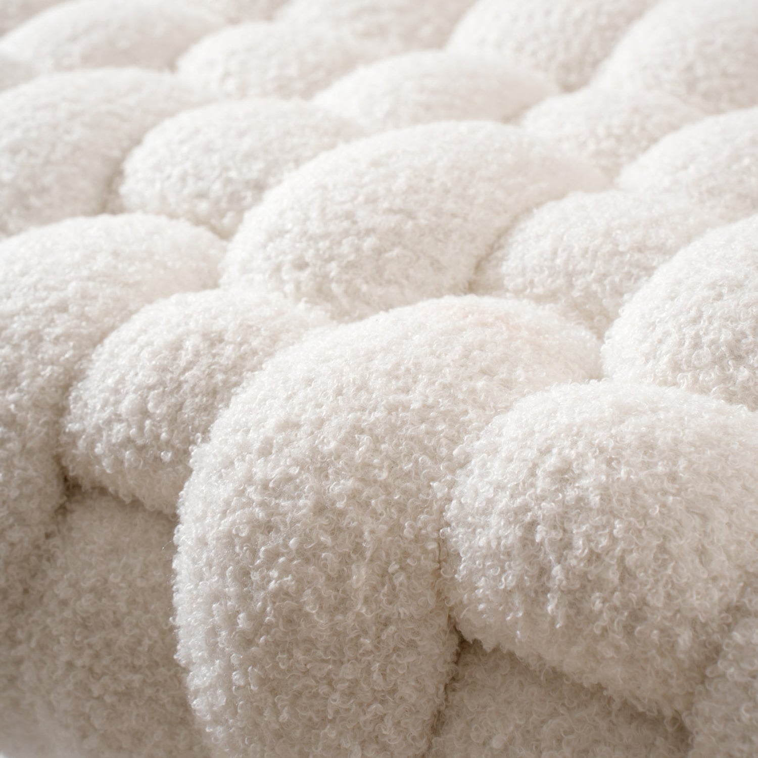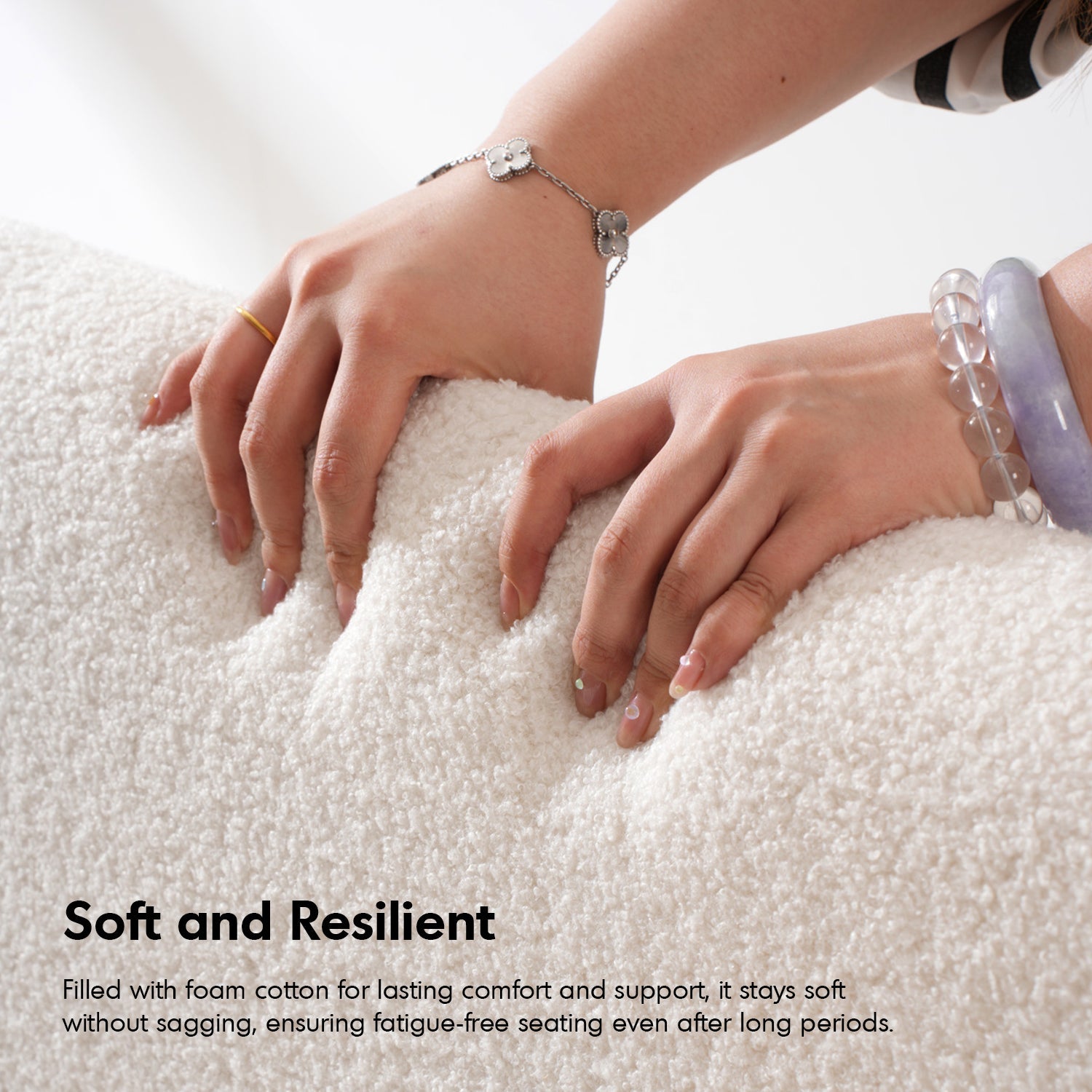 The meticulously handwoven bouclé fabric exudes a luxurious texture, combining elegance with superior comfort. |