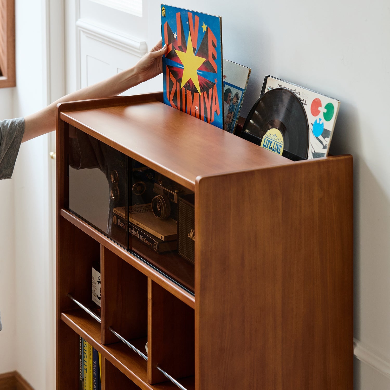 Multiple partitions and recessed zones let you showcase books records or decor while keeping everything neatly organized |