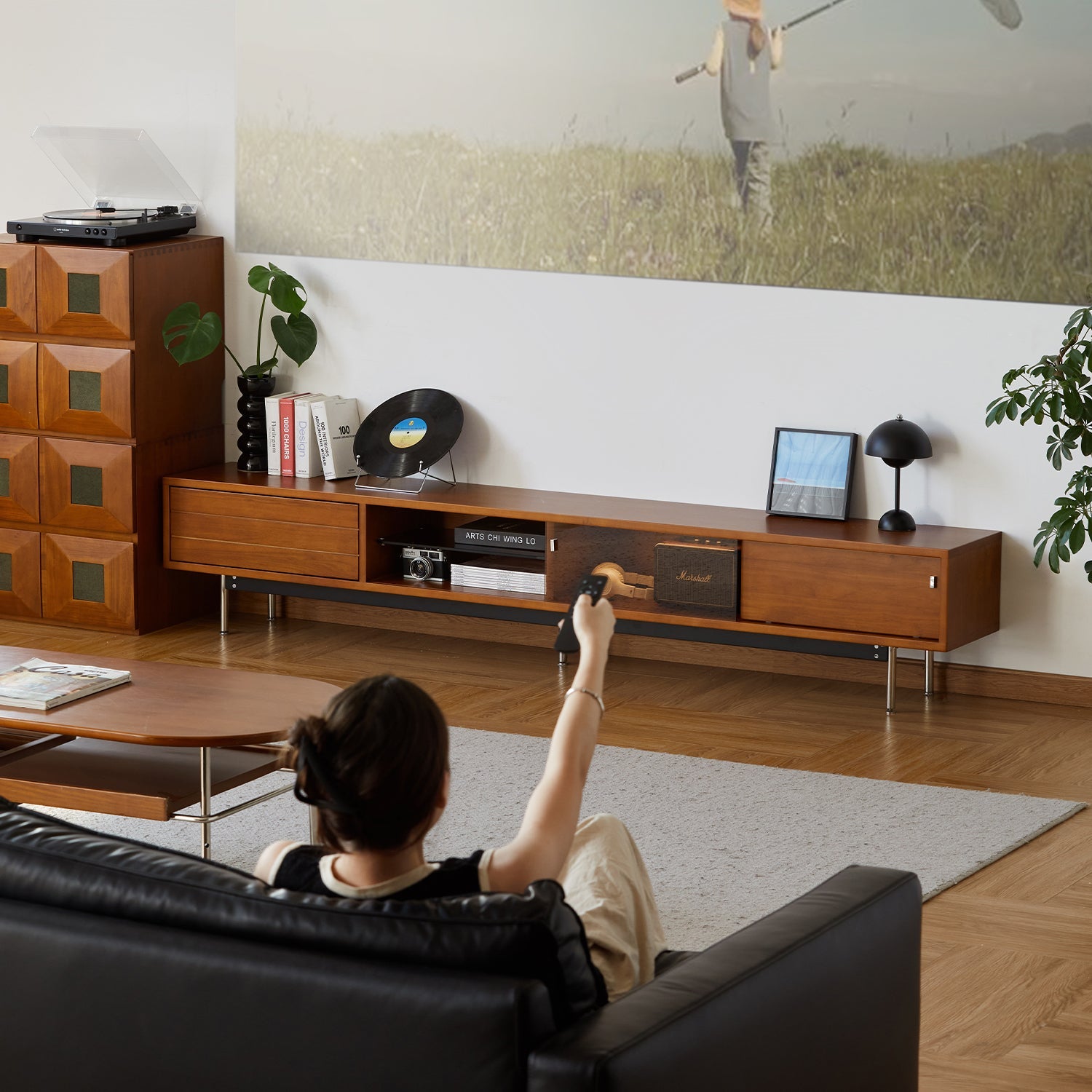 Celebrate timeless style with the Vintage Boxwood TV Console BACH — a minimalist classic featuring refined material contrast and smart adjustable shelf storage.