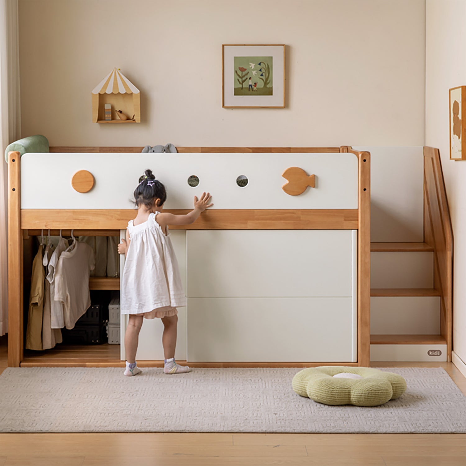 Thoughtfully designed storage space helps keep toys, books, and daily essentials neatly organised while maintaining a tidy bedroom. |