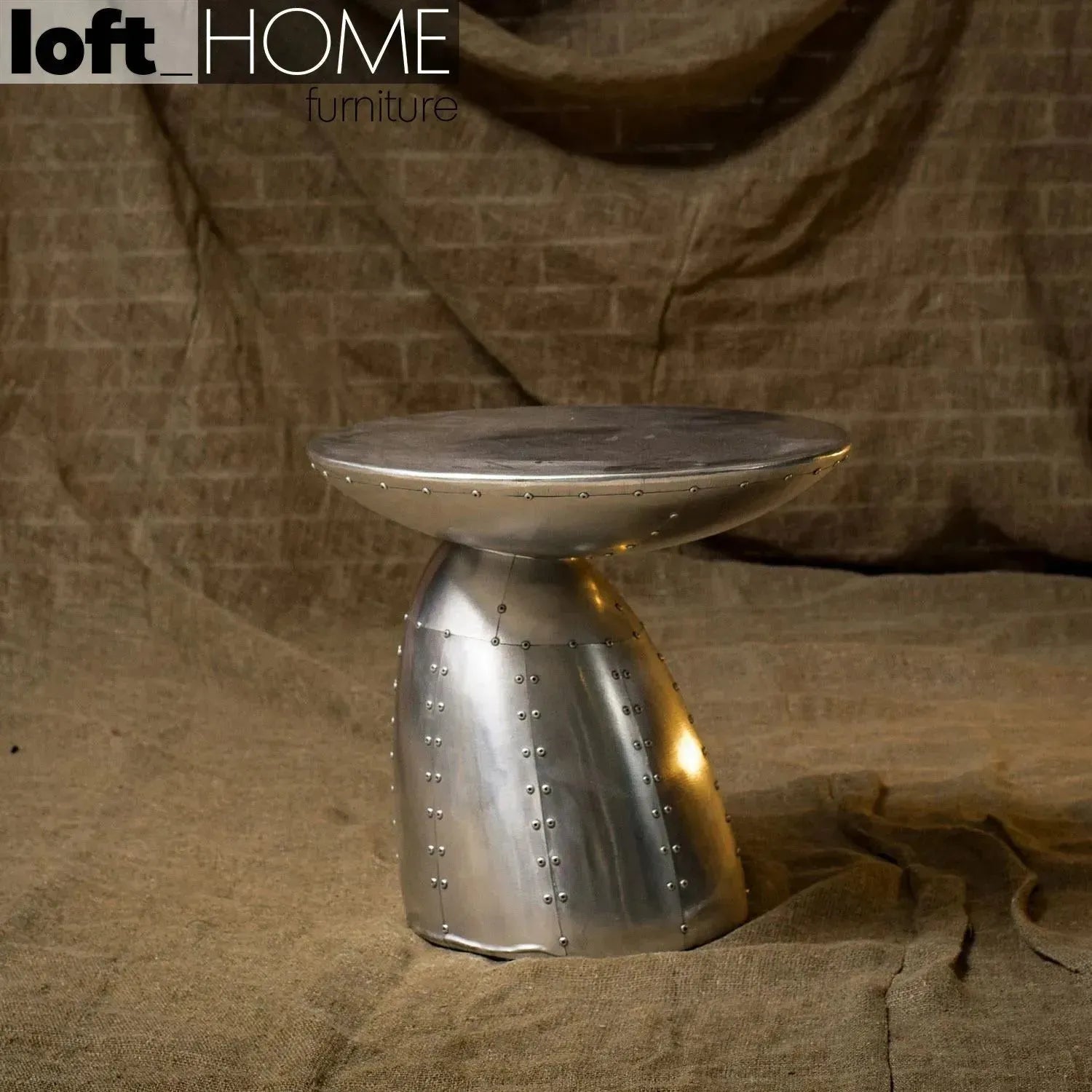 The Industrial Aluminium Side Table is a classic example of the industrial furniture genre-distressed, complete with exposed steel screws and showing professional craftsmanship. |