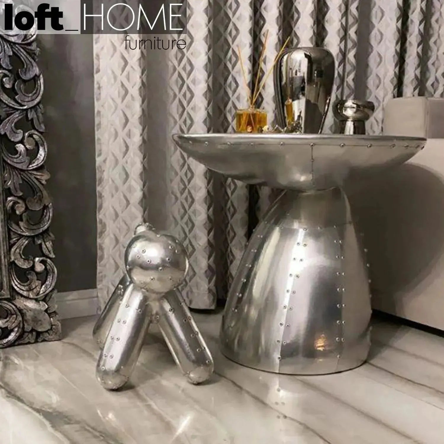This table, which features L700 x W700 x H720mm airport classic design for industrial style and function). Aluminum-wrapped wood body, with intentional distressing and plastic feet for stability._It's not just a piece of furniture, it's an object that tells the story of industrial craftsmanship. This table has a practicality. It is suitable for the center of living rooms or offices, exuding an industrial character and reflecting craftsmanship.