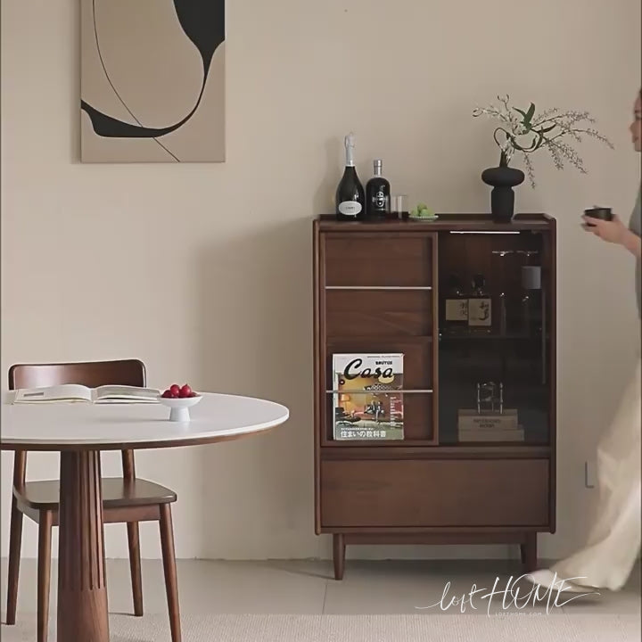 The cabinet is crafted from solid walnut wood, known for its rich tone and strong structure, offering long lasting durability and a premium feel you can trust for daily use. |