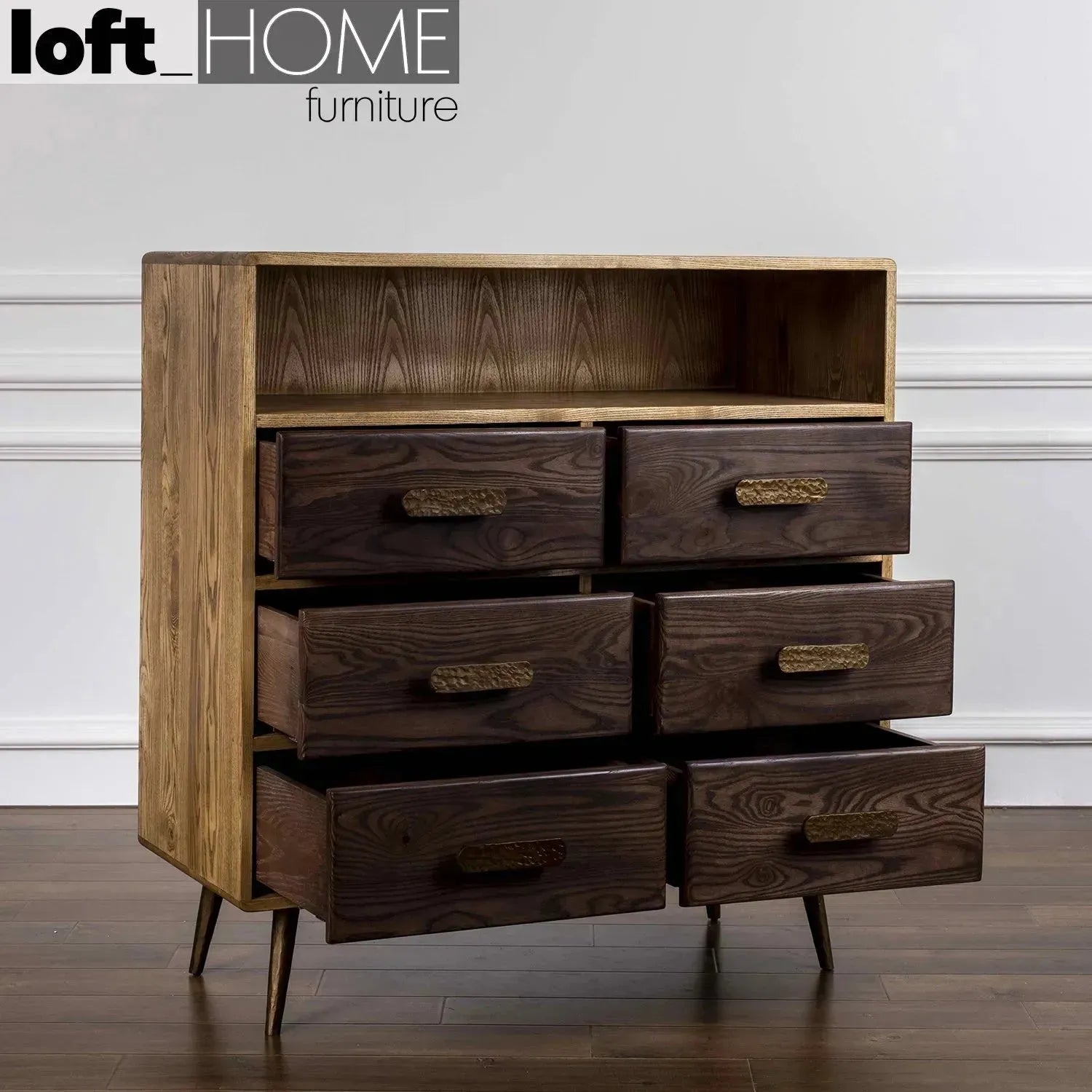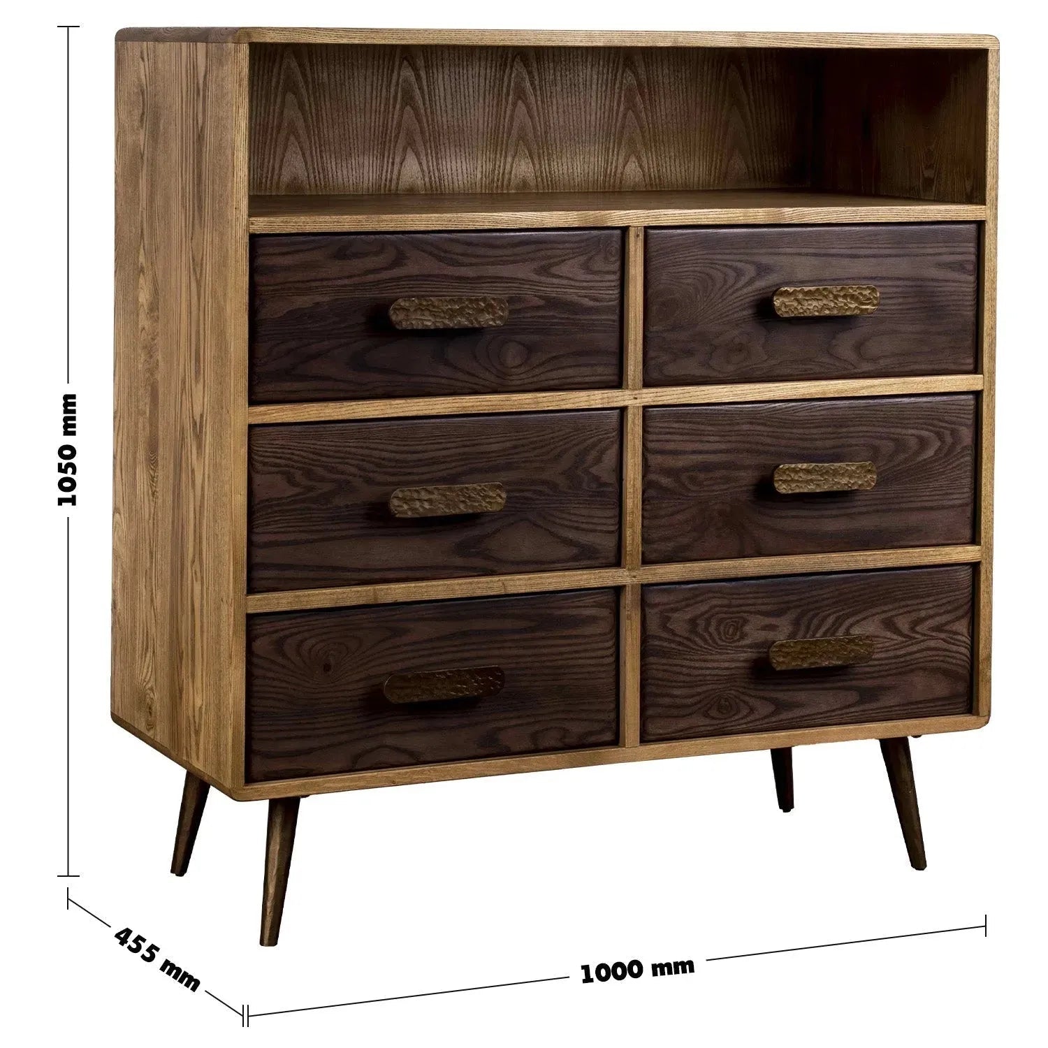 Manchurian ash wood is combined with brass accents to achieve sophistication that goes well together with rustic charm. You have a lot of drawers that provide ample storage space ensuring your area stays tidy and free from clutter. This is a classic item for your home that serves both functionality and style.