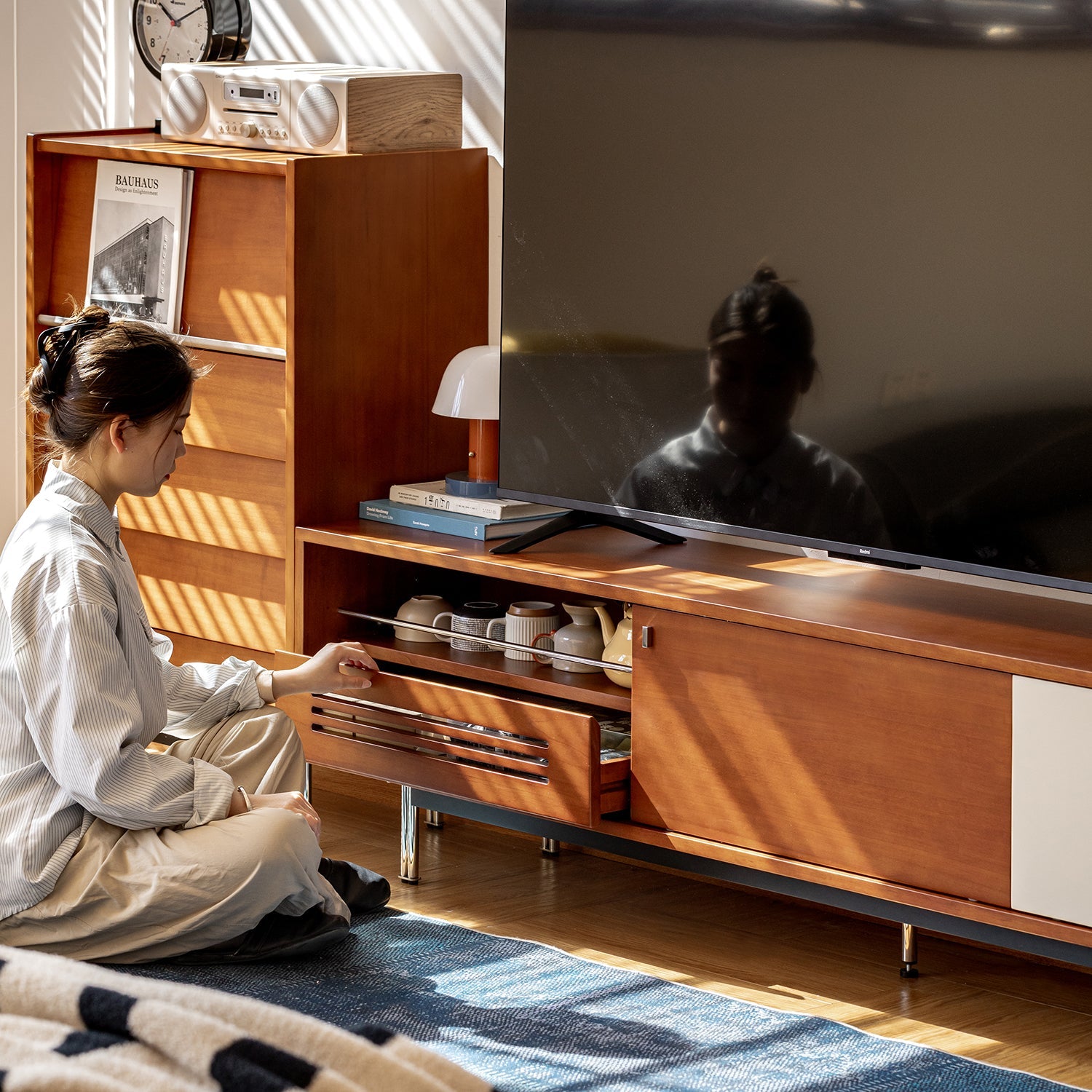 Crafted from boxwood with a dense and stable structure, this TV console offers excellent durability and a reassuring weight that feels sturdy and reliable for everyday use. |