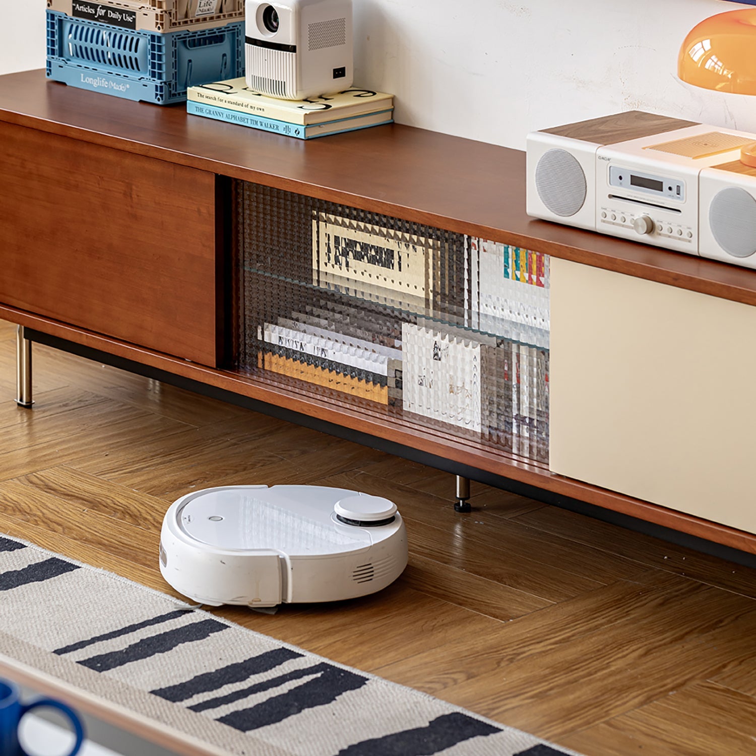 A timeless vintage inspired silhouette with warm wood tones that blends easily with modern, retro, or minimalist interiors without overpowering the space. |