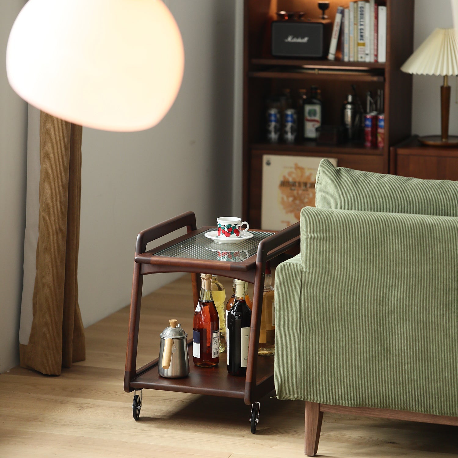 Vintage Boxwood Wheeled Trolley Side Table YOYO brings smooth mobility, compact storage, and warm vintage wood style for flexible everyday use in modern homes