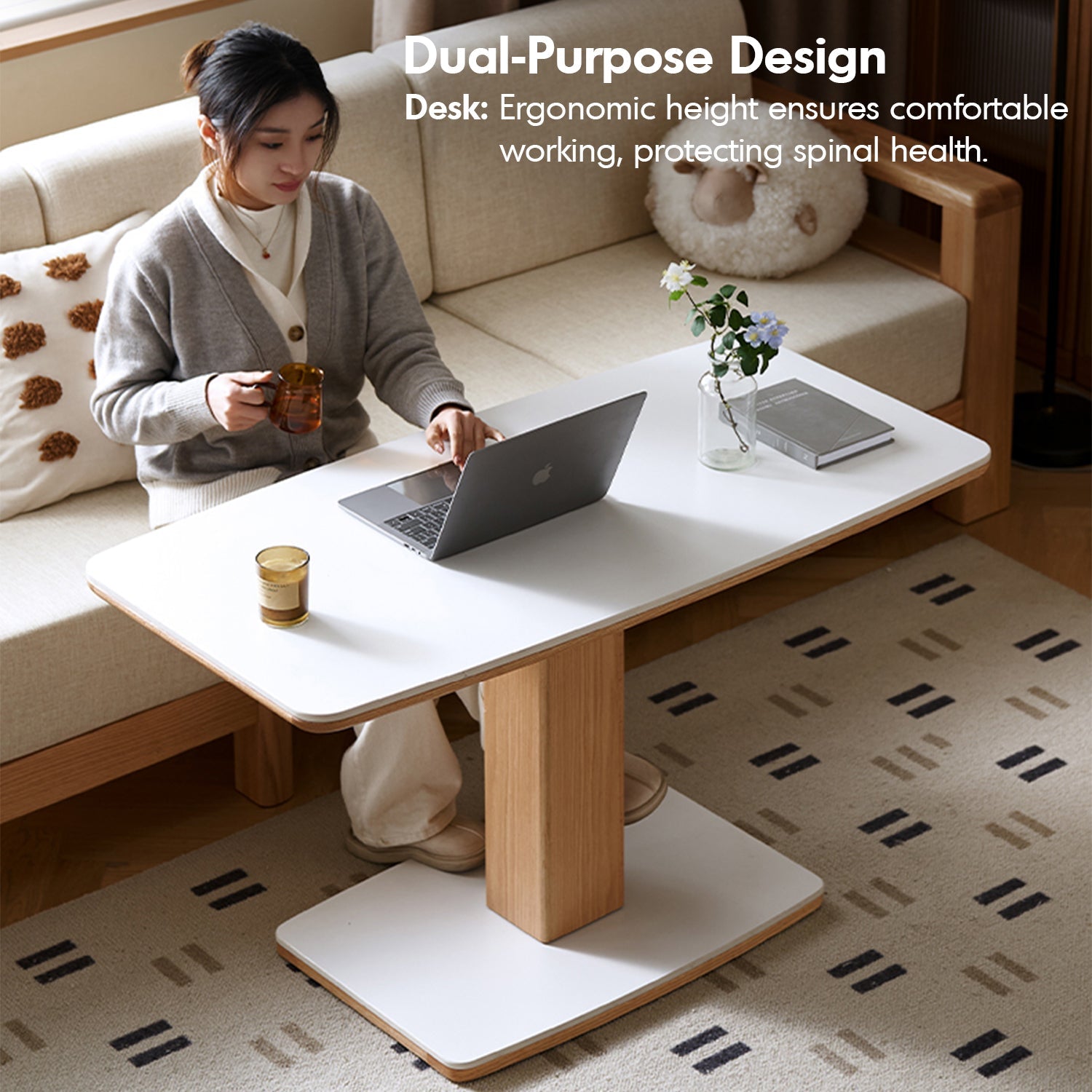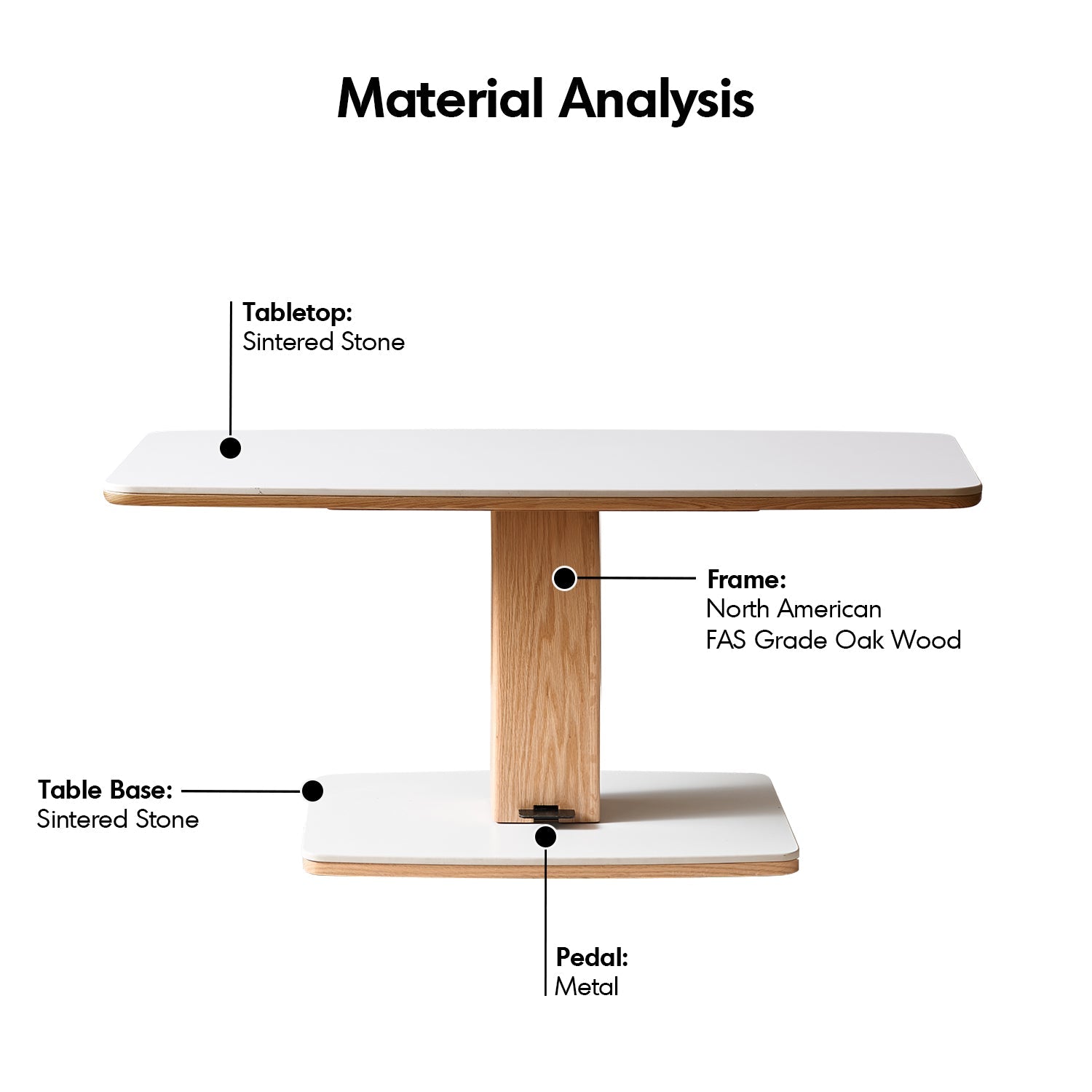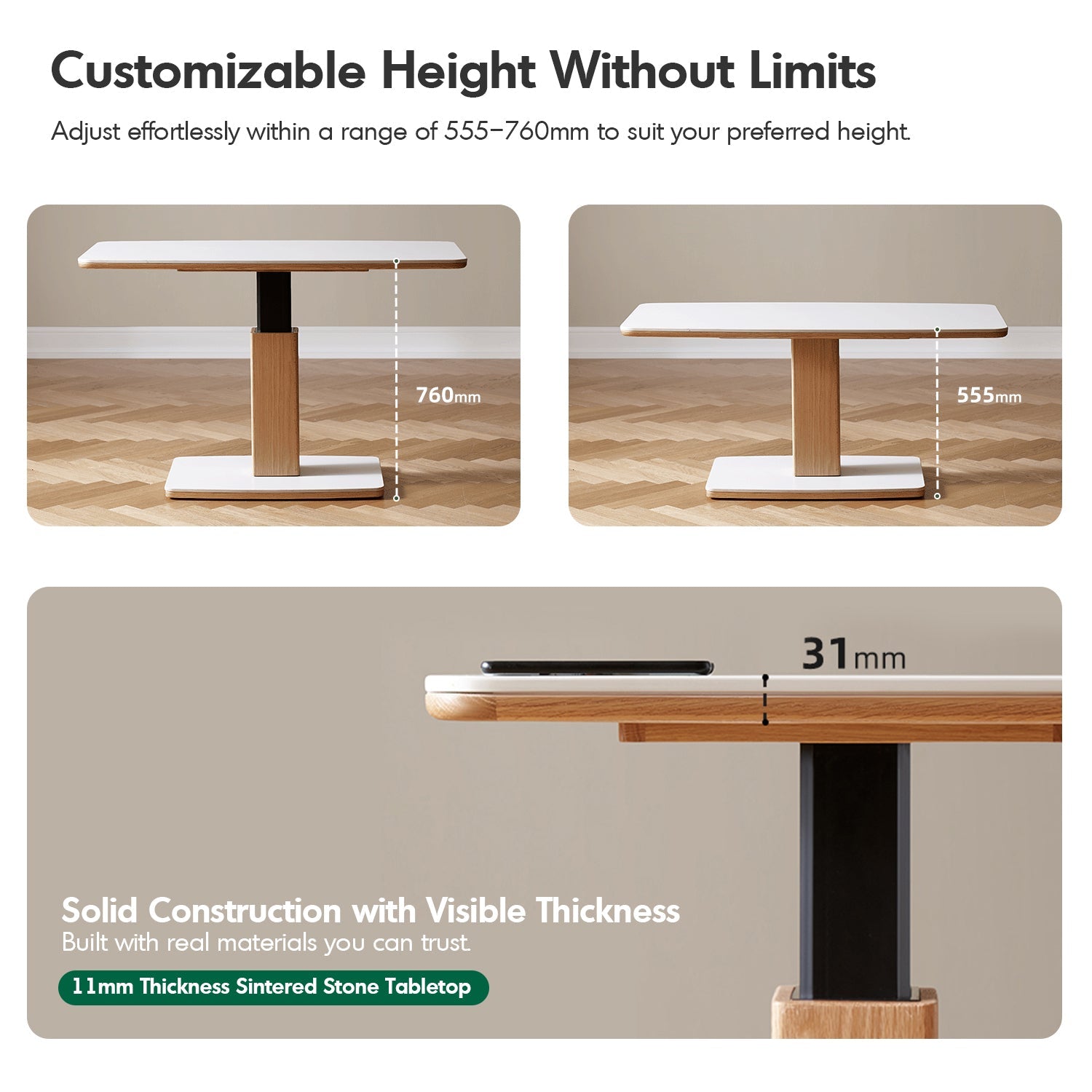 Minimalist Oak Wood Sintered Stone Coffee Table LINO offers height adjustment, dual-purpose design, and premium stability - perfect for modern livin