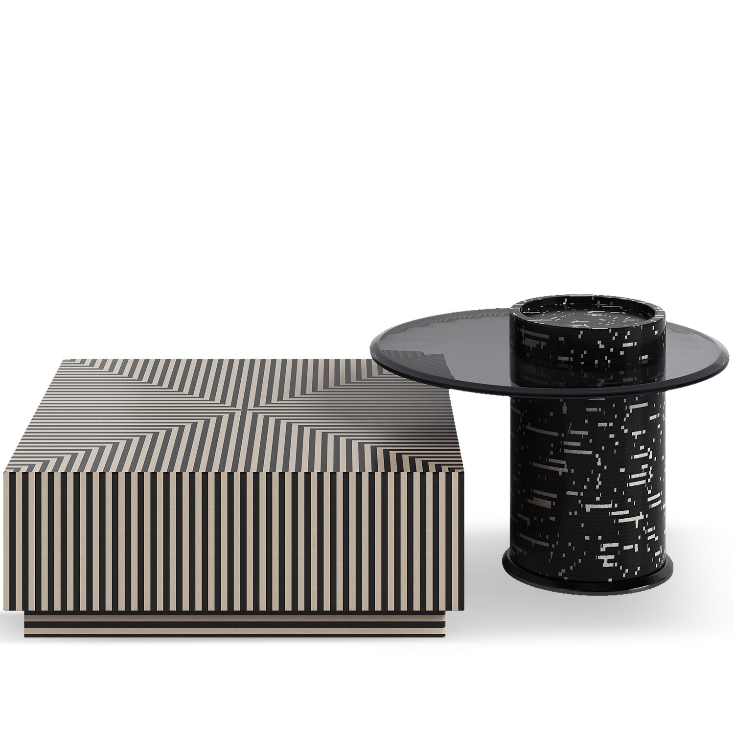 The STRIPE Coffee Table Set combines modern elegance with practical functionality. Featuring a striking black tempered glass secondary table and a bold striped design on the main table with a sintered stone top, this two-piece set adds sophistication to any living space. With integrated storage drawers and durable construction in MDF and Tech Wood Veneer, it's designed to be both stylish and practical perfect for contemporary, organized interiors.