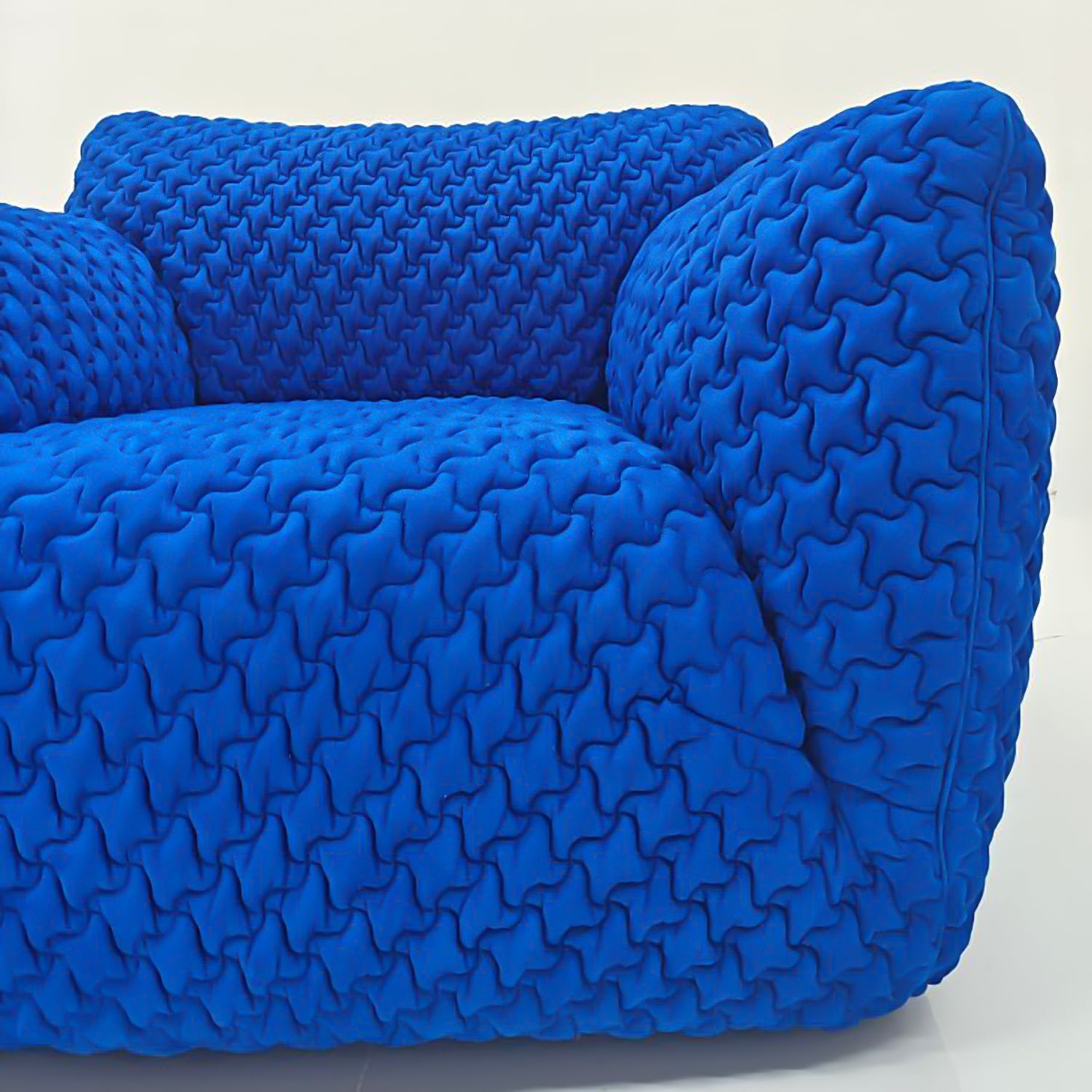 Contemporary Mix Weave Fabric 1 Seater Sofa NUVOLA features a cocoon-like seat, plush feather filling, and removable covers in a wide choice of fabrics.