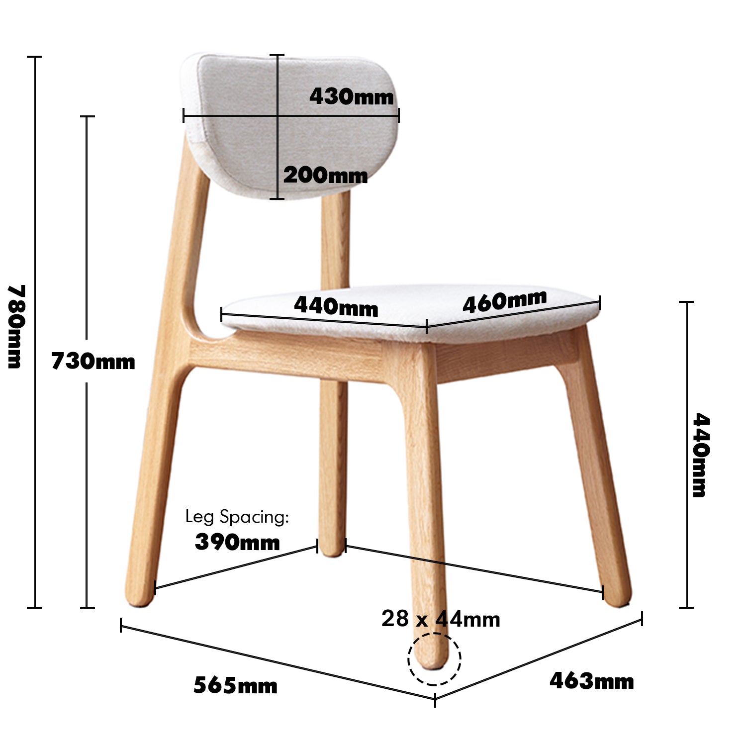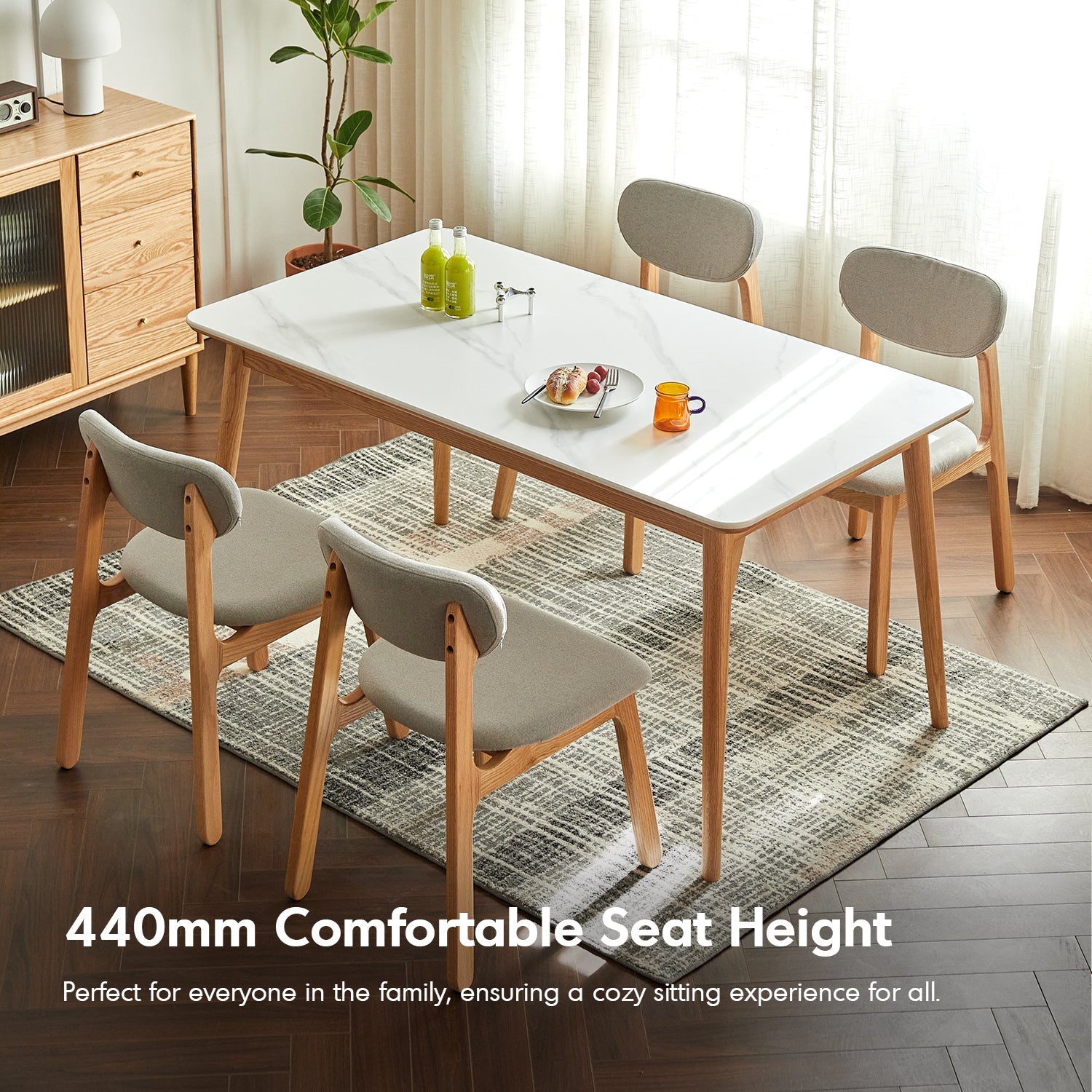 A spacious 460mm seat and 440mm seat height provide ergonomic comfort, suitable for everyone in the family. |