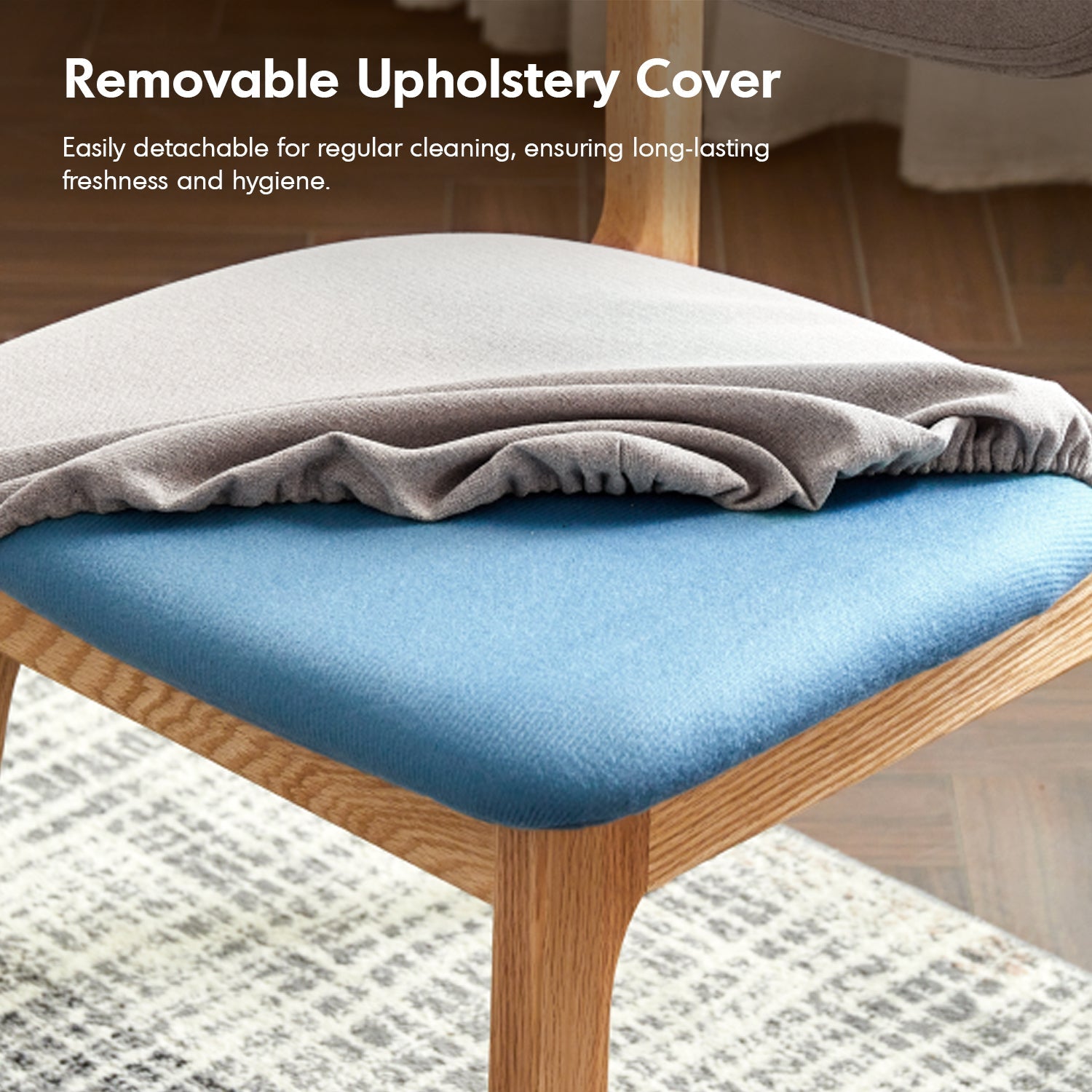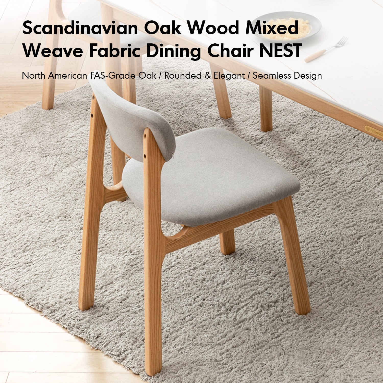 Scandinavian Oak Wood Mixed Weave Fabric Cover Removable Dining Chair NEST