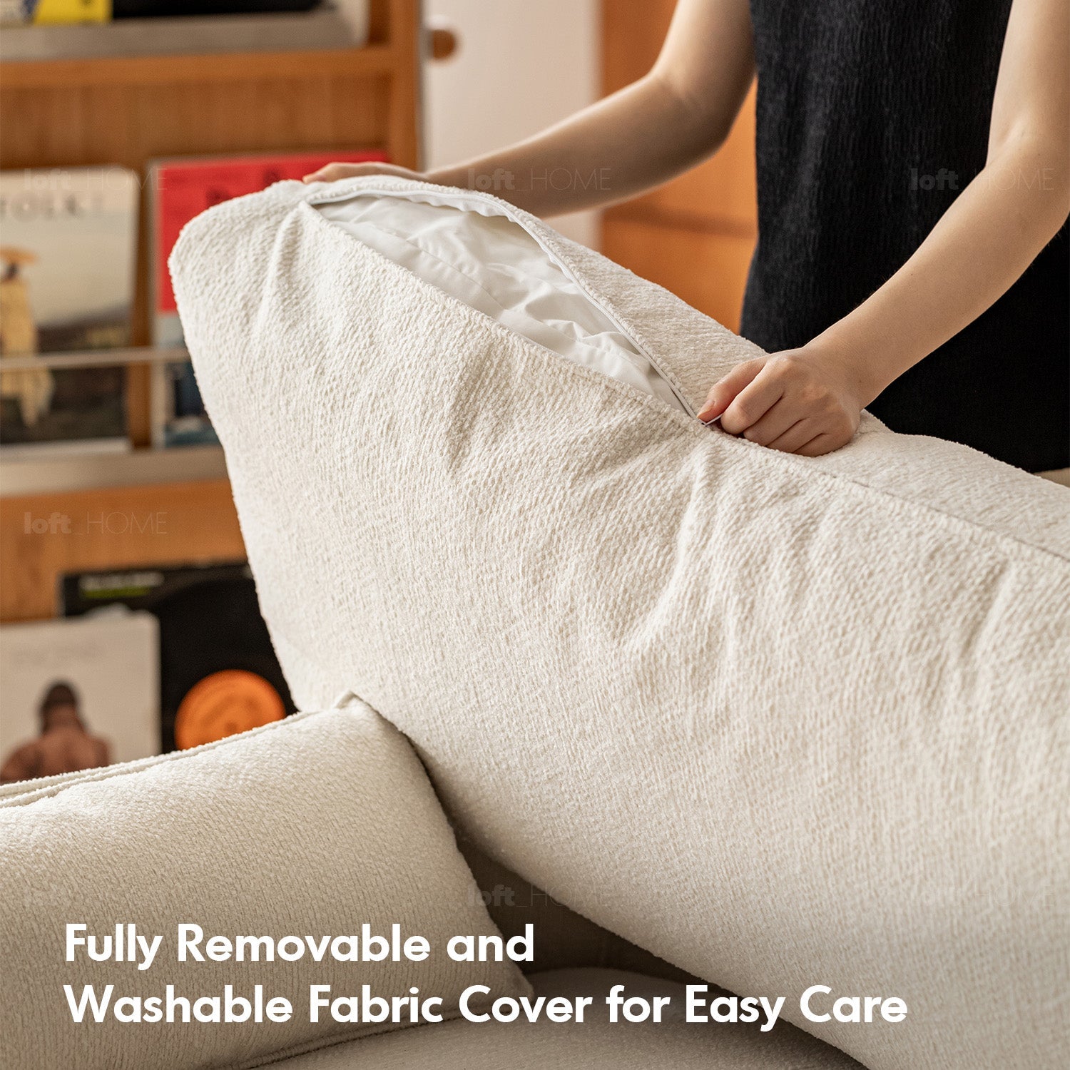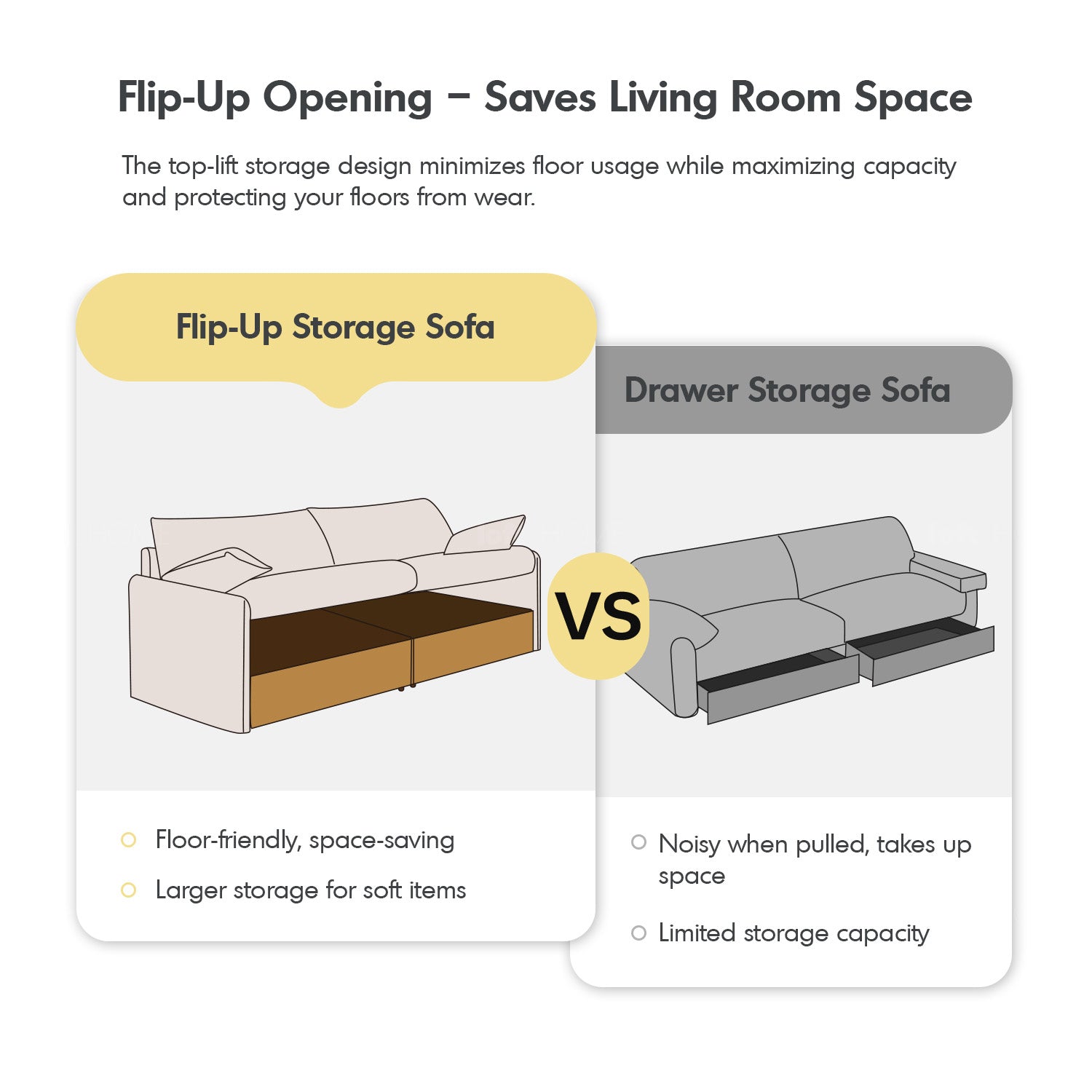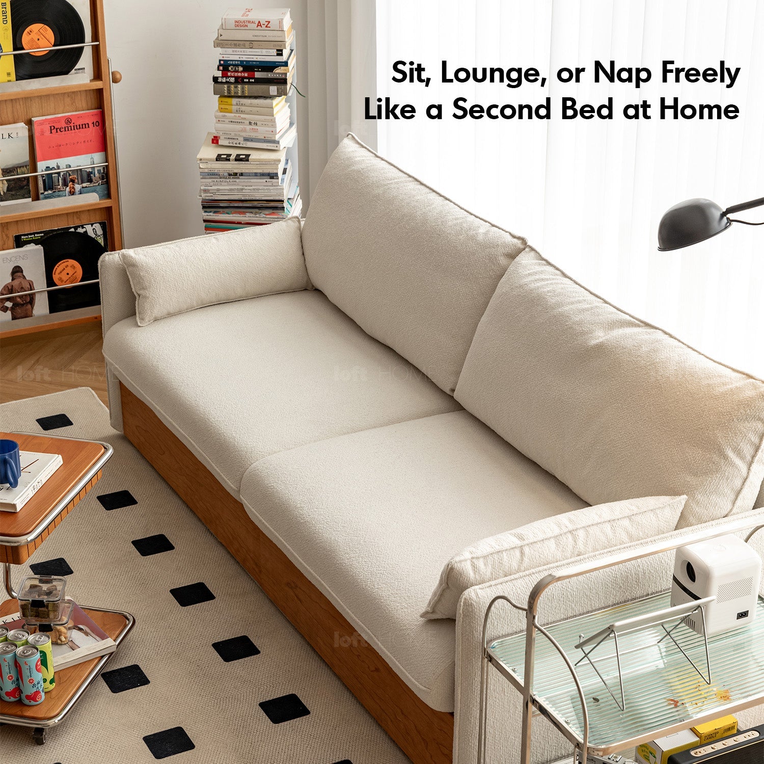 Japandi Boucle Fabric Pine Wood Storage 2 Seater Sofa KANGAROO features 266L hidden storage, deep cushioned seating, and soft boucle fabric—perfect for cozy living in compact spaces.