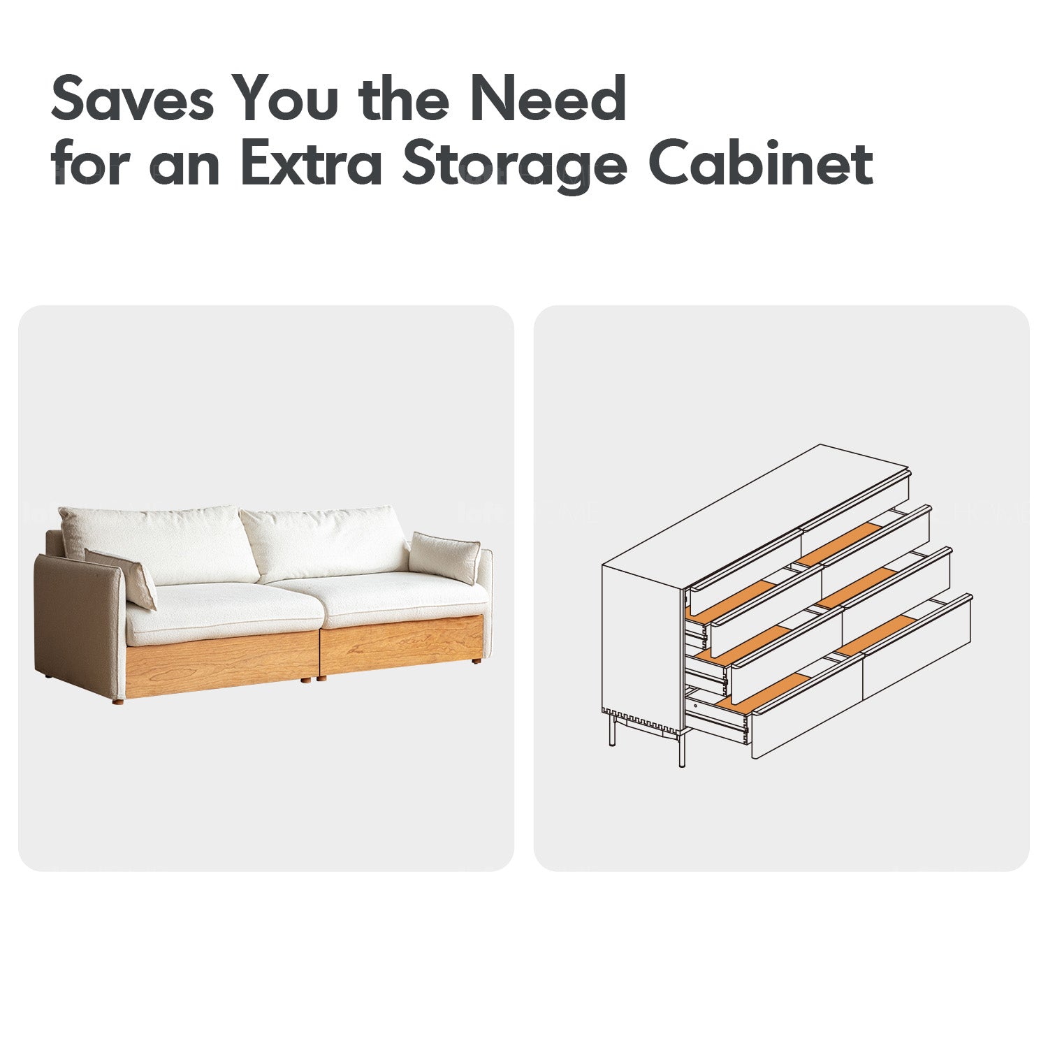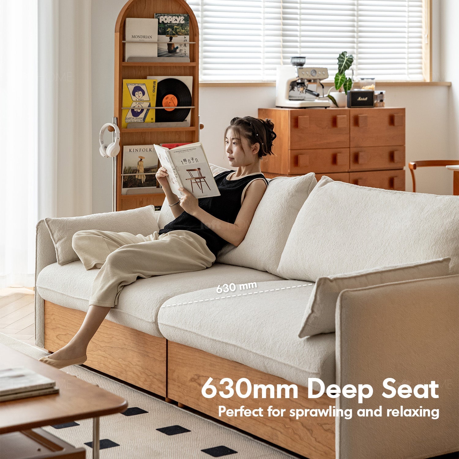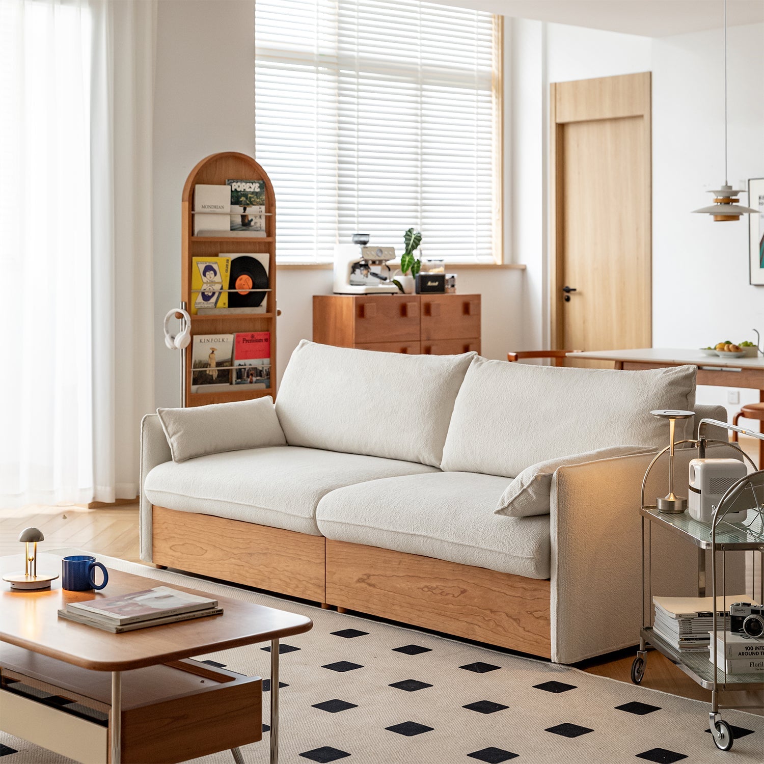 Japandi Boucle Fabric Pine Wood Storage 2 Seater Sofa KANGAROO