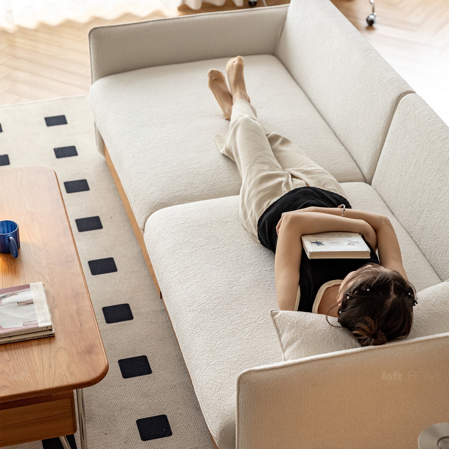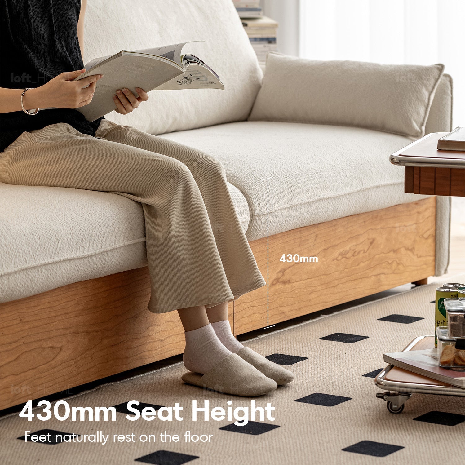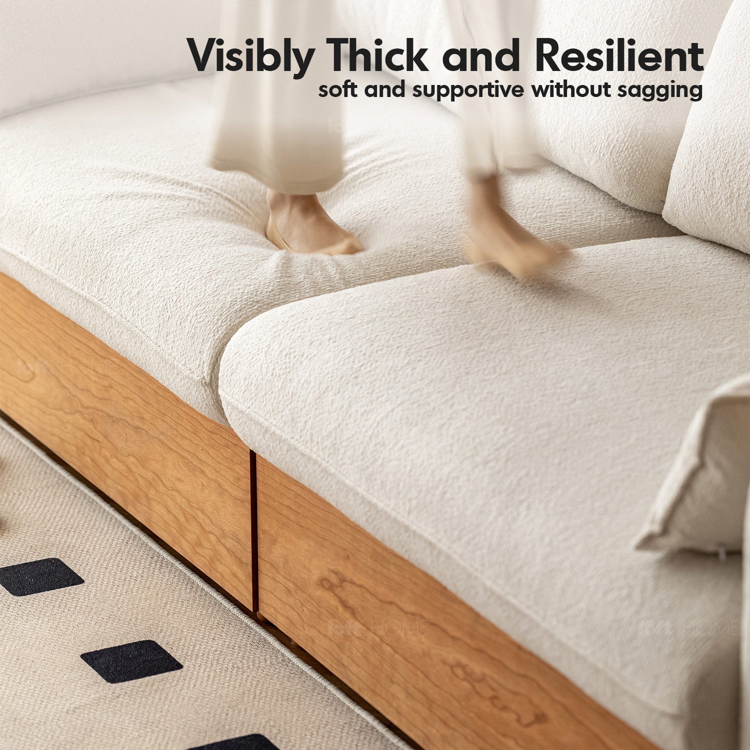 Japandi Boucle Fabric Pine Wood Storage 2 Seater Sofa KANGAROO
