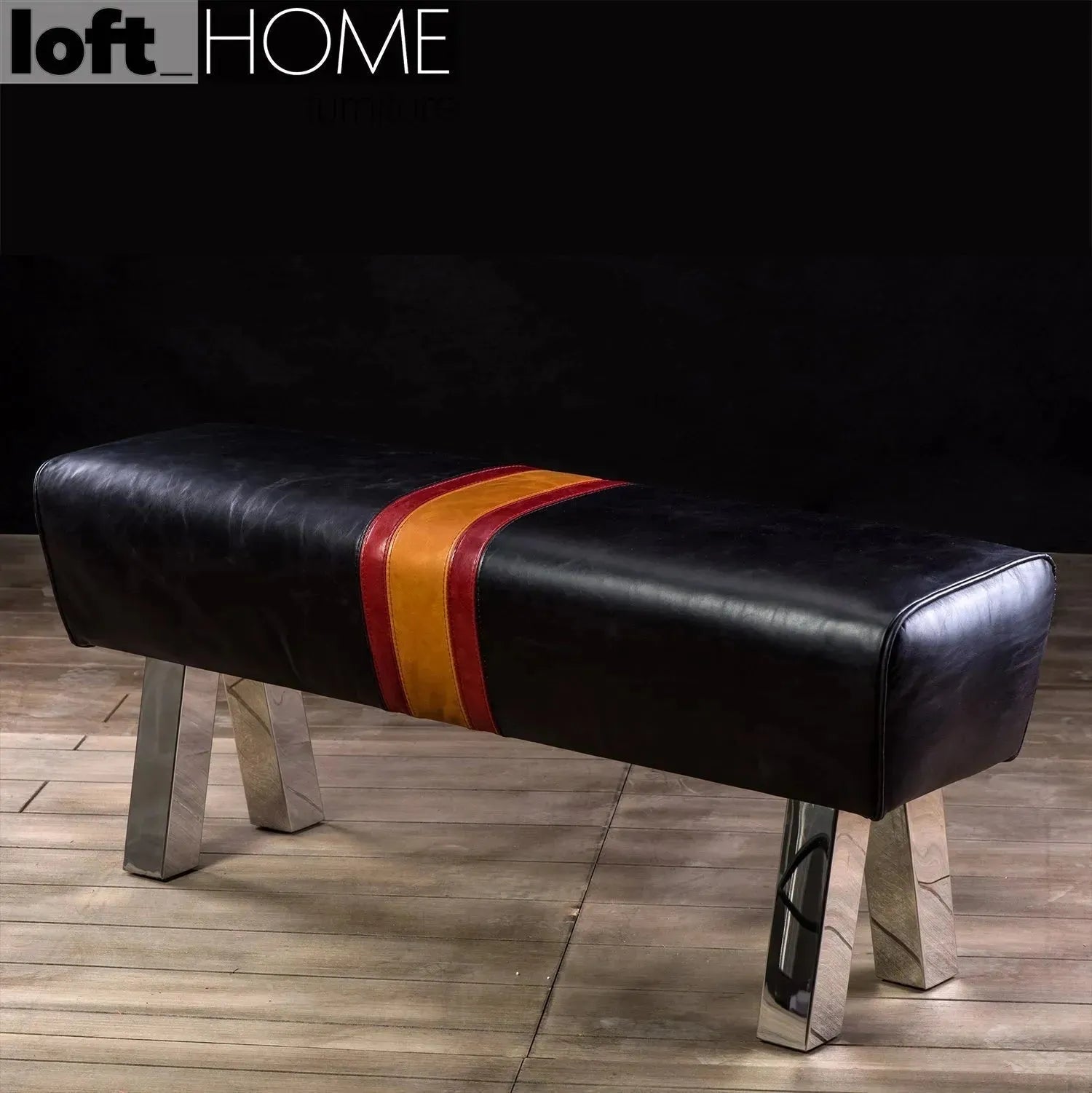 | Material: | Genuine leather with shiny steel legs. |
