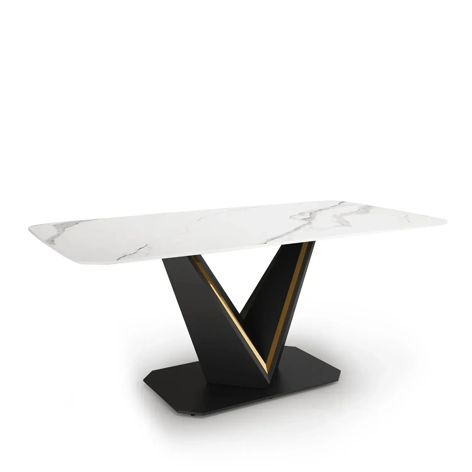 Be liberated in your dining gateway with this lavish and remarkable Modern Sintered Stone Dining Table. Featuring the beautifully veined patterns and colours of this stone, it truly conveys the essence of opulence, adding liveliness to any part of the space. We designed the dining table to make it suitable for modern style furniture with a table top that is 11 mm in thickness, and a slim profile, it is good looking and elegant so that you will derived that modern decor edge in your home.