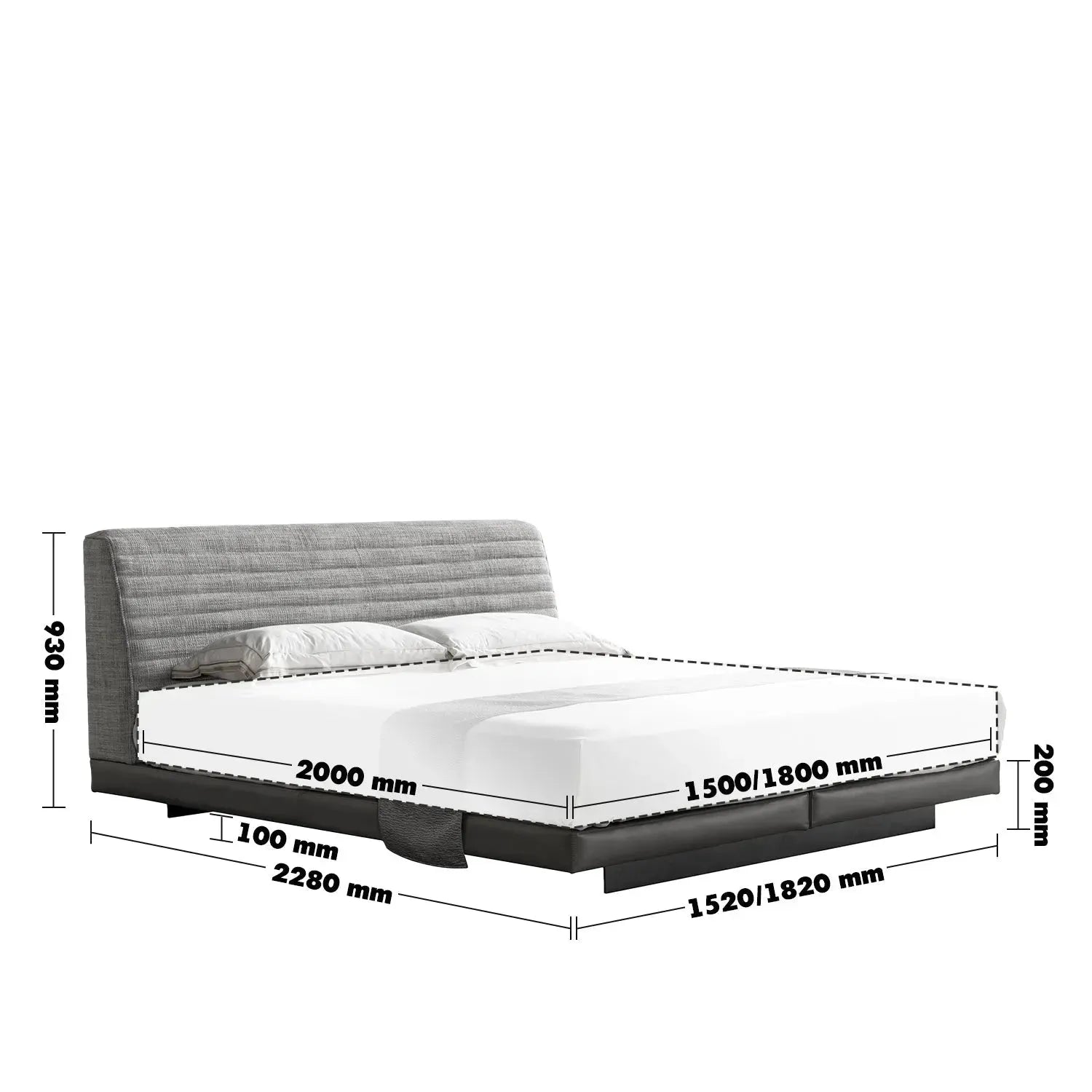 Asia King External Frame: W1820 x L2280 x H930mm Suitable mattress: W1800 x L2000mm |
