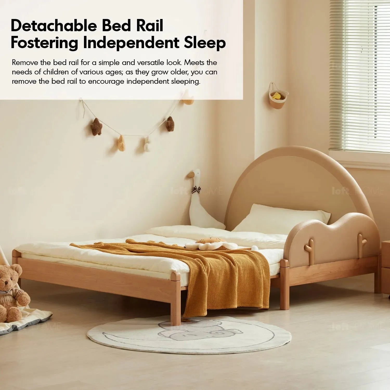 The removable side rails make it convenient for older kids to use. An eco-friendly and sturdy bed, versatile for a comfortable sleep as they grow.