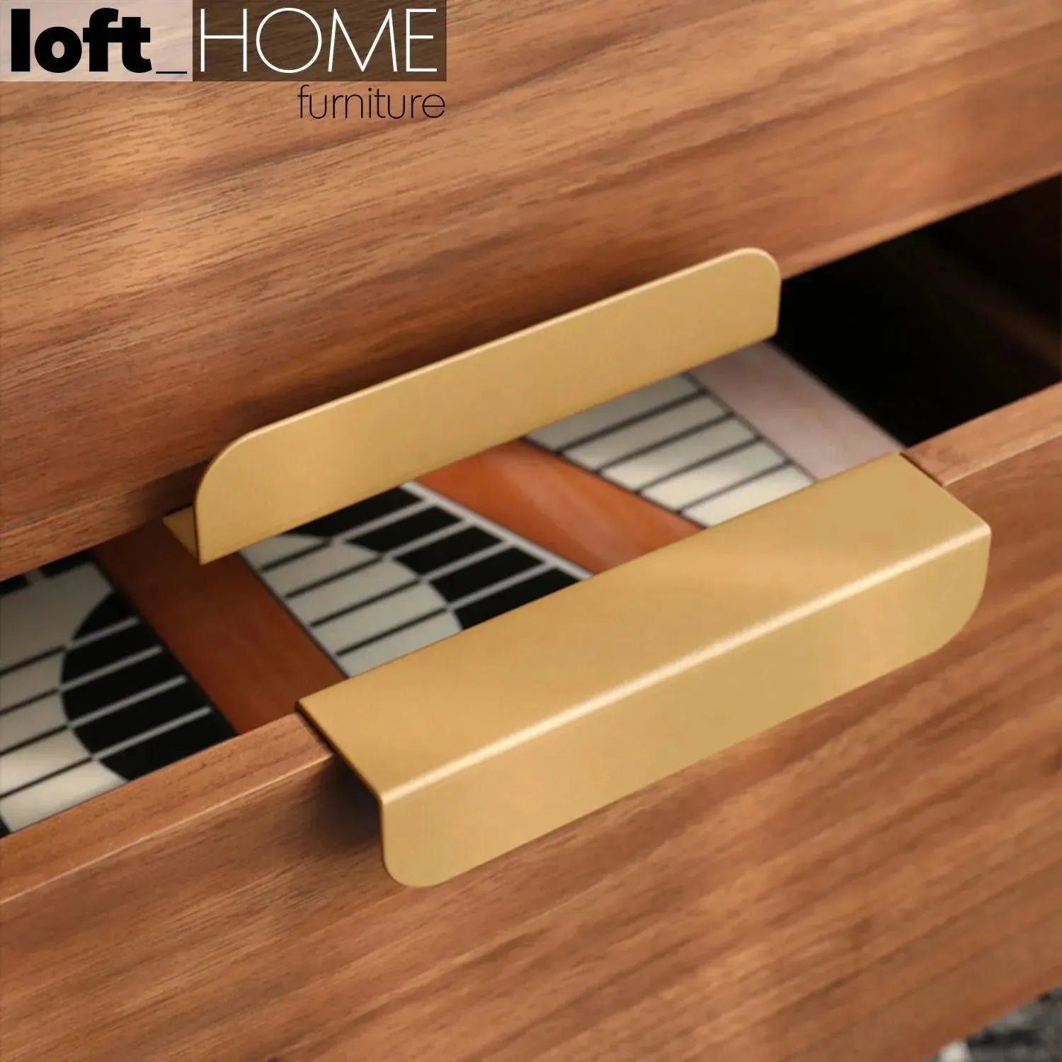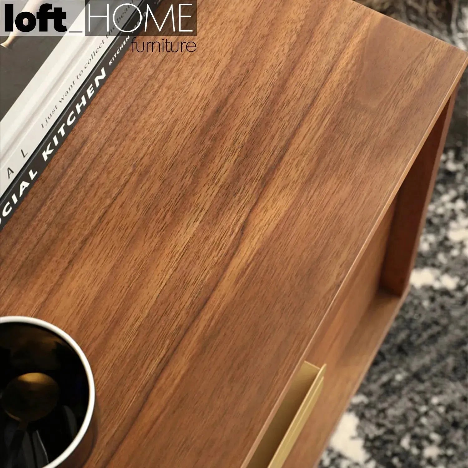 | Material: | Walnut veneer wood with brass handle and carbon steel legs. |