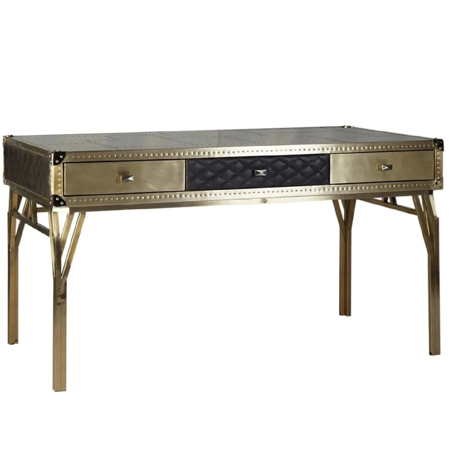 Discover a seamless blend of shape and purpose for your home by taking it home with you, our Genuine Study Table. The rustic styling of the study table will class up any room. Brass and leather come together to produce a classic and contemporary piece that matches different interiors. Cleaning and maintaining a true leather surface ensures the continuity of its original beauty.