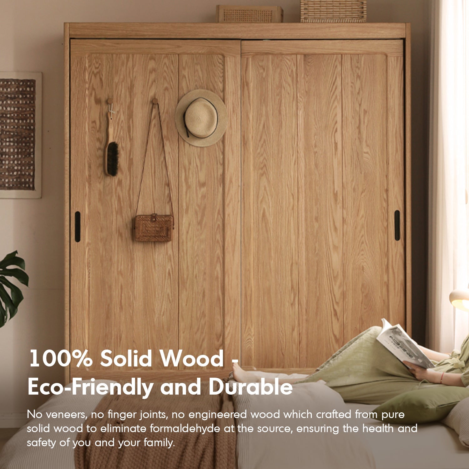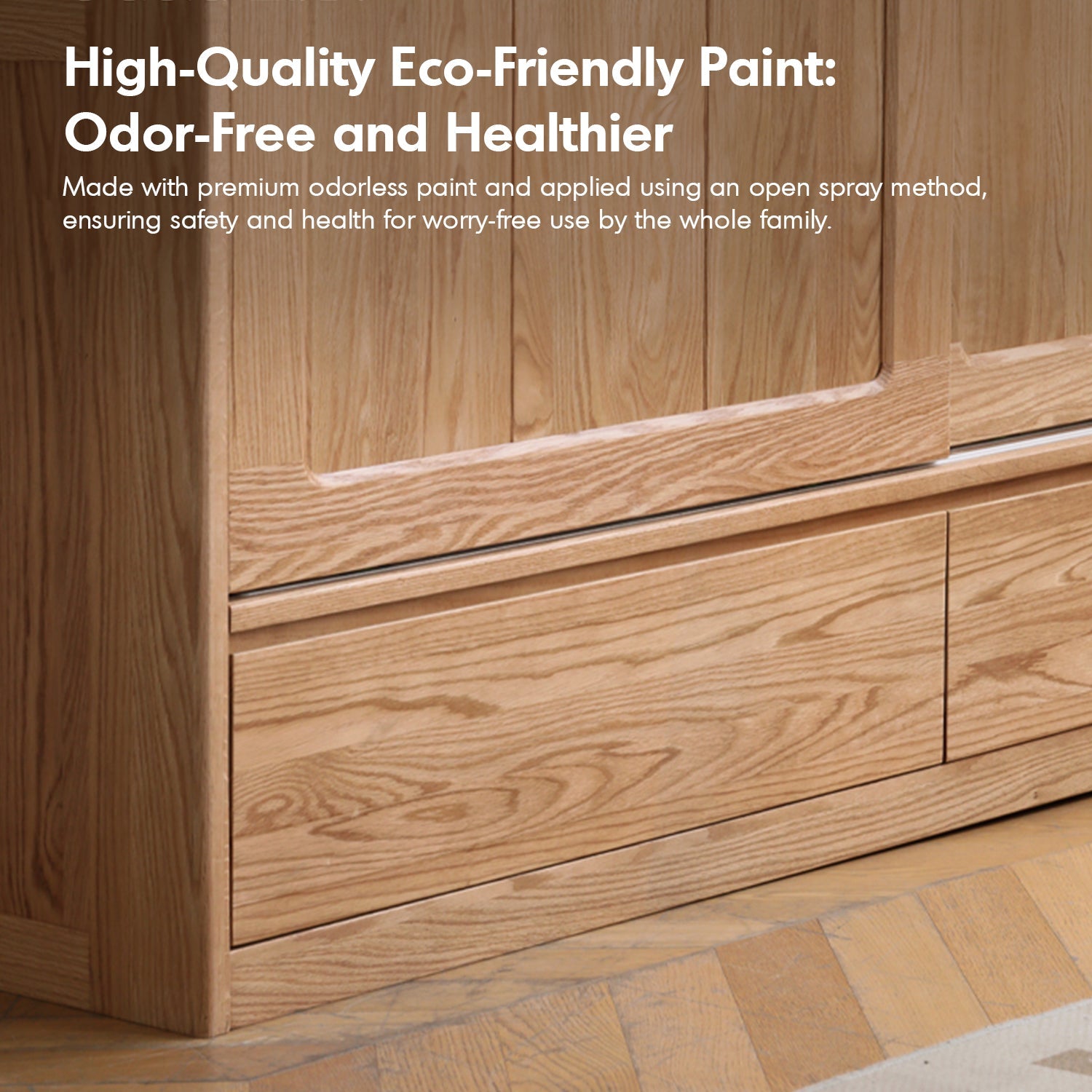 Made from 100% eco-friendly solid oak with no engineered wood or veneers, ensuring long-lasting quality and safety. |
