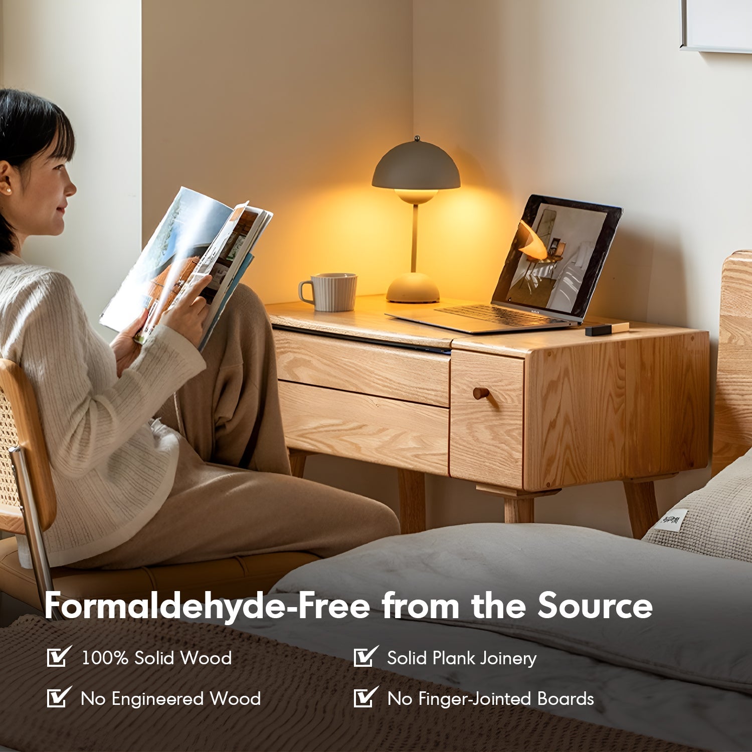 rafted from FAS-grade oak with solid plank joinery, it offers superior stability, natural beauty, and long-lasting quality without engineered or finger-jointed wood. |