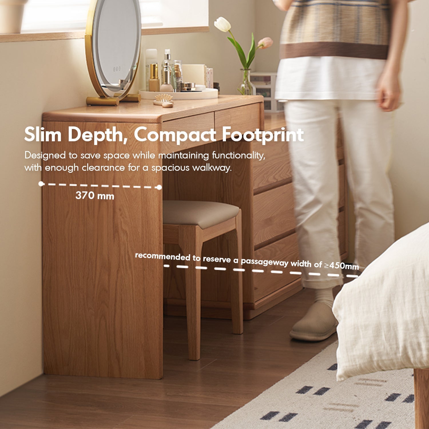 Designed at an optimal height for comfortable sitting, perfect for studying, working, or makeup application. |