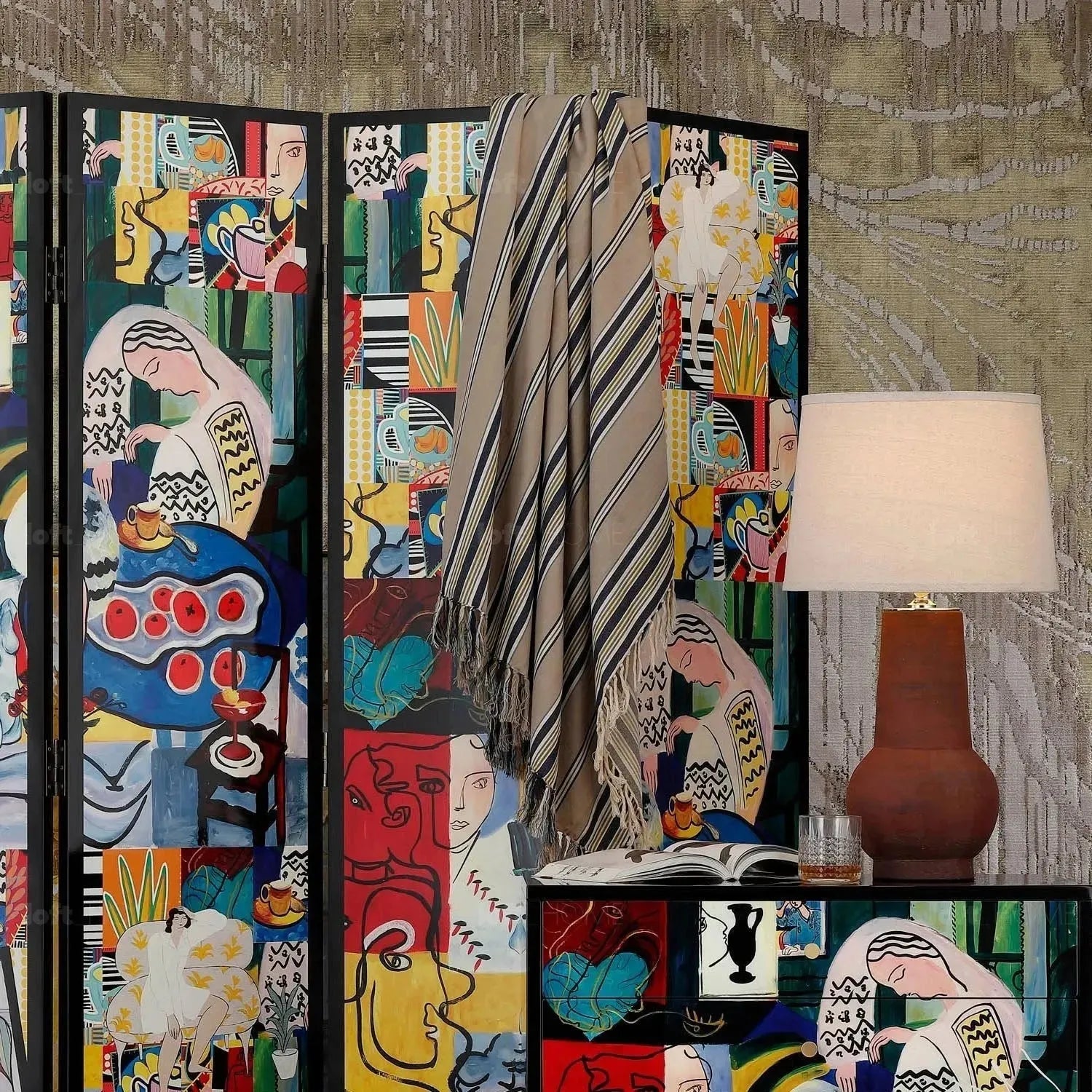 Enjoy a harmony of craftsmanship in every element with the Eclectic Wood Divider. The Wood Divider offers a unique blend of artistic expression and practicality. An aesthetic appeal is enhanced by a lacquered solid wood frame.