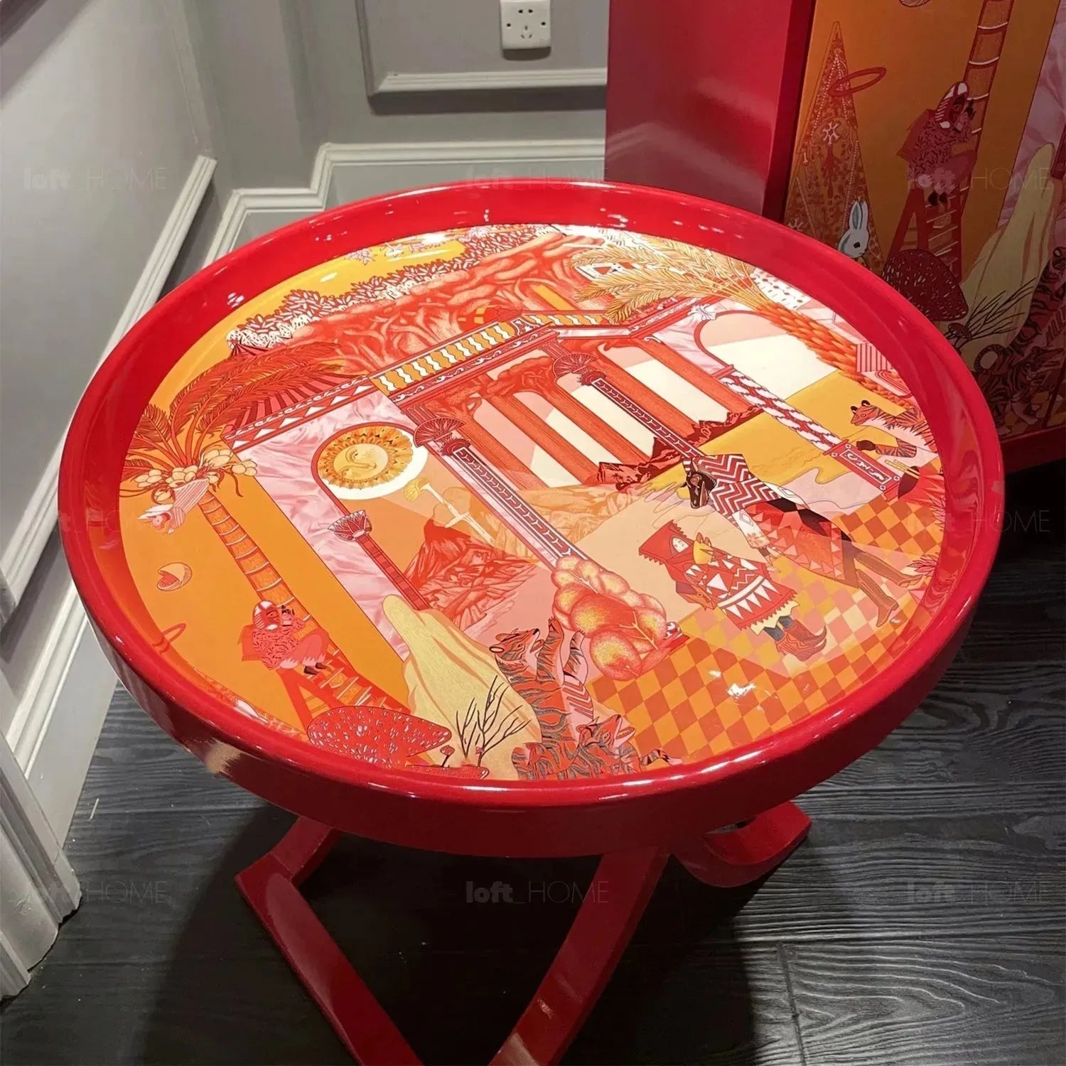 Enter the beautiful realm of Eclectic Wood Side Table, where utility and creativity meet. This environmentally friendly engineered wood panel has a lacquered solid wooden frame that is individually hand-painted and transforms each item into an original piece of artistic expression. This side table stands not only for a simple piece of furniture, but is an example of real art as reflected by the tiny details of the paintwork telling about masterful performance.