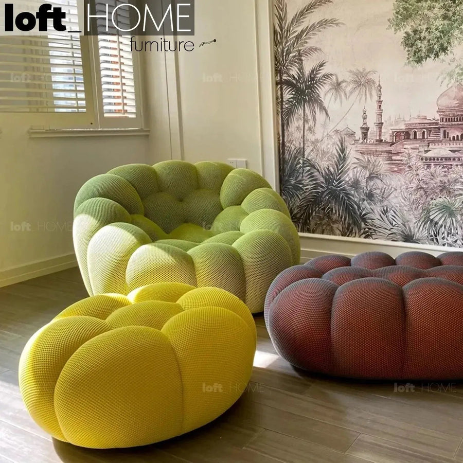 Contemporary Fabric Round Ottoman BUBBLE
