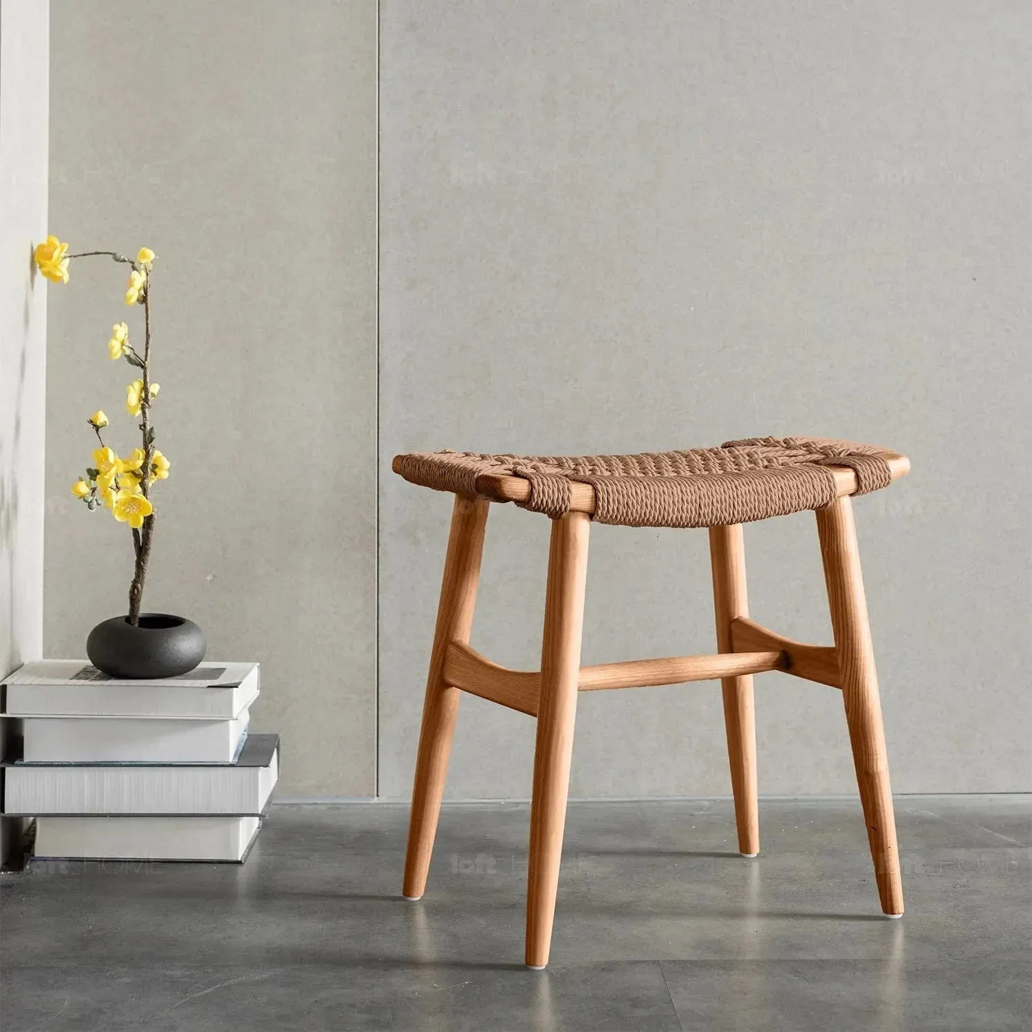 Japandi Wood Woven Rope Dining Stool WOVEN