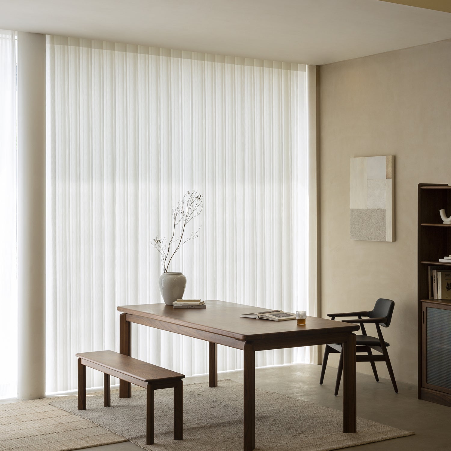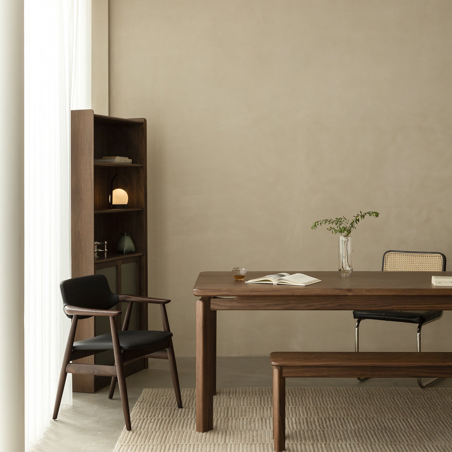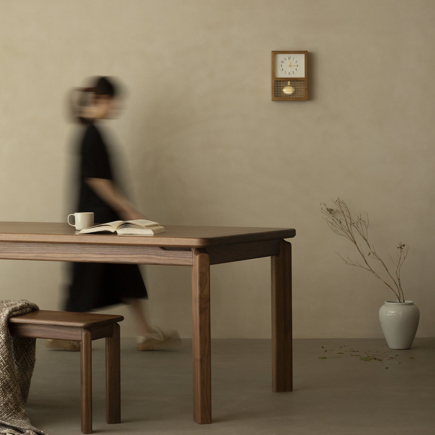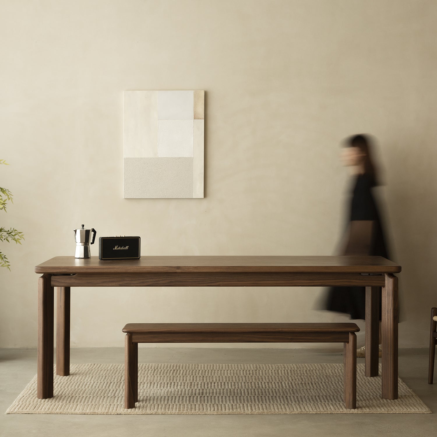 Japandi Walnut Wood Dining Bench RIVERIN