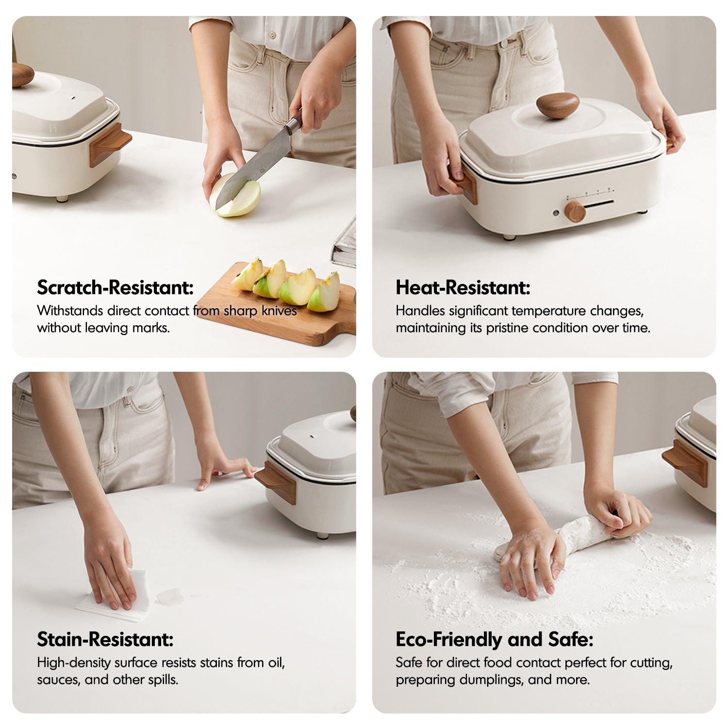 Scratch-resistant, heat-resistant, and stain-resistant, the tabletop ensures hassle-free maintenance and lasting elegance. |