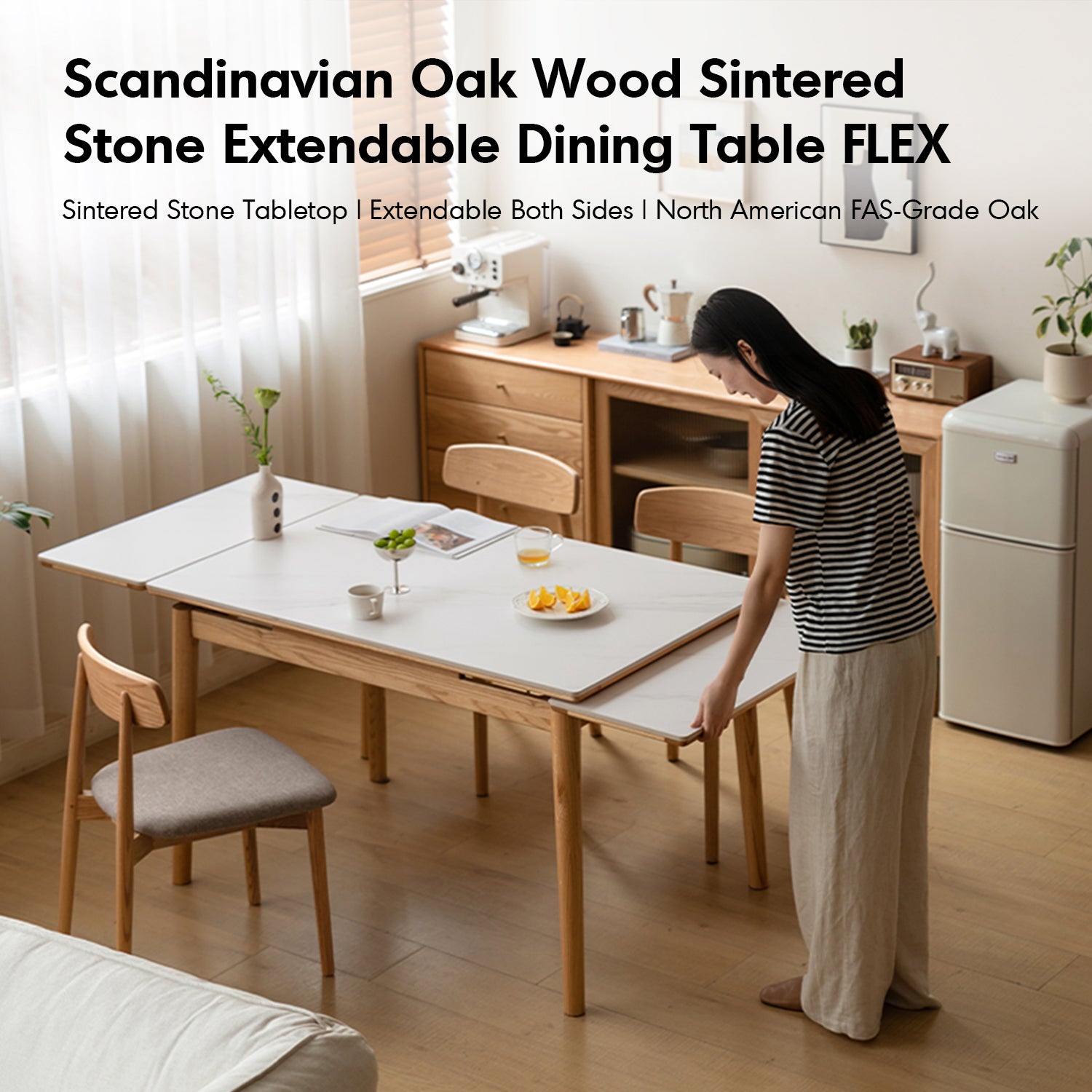 Scandinavian Oak Wood Sintered Stone Extendable Dining Table FLEX