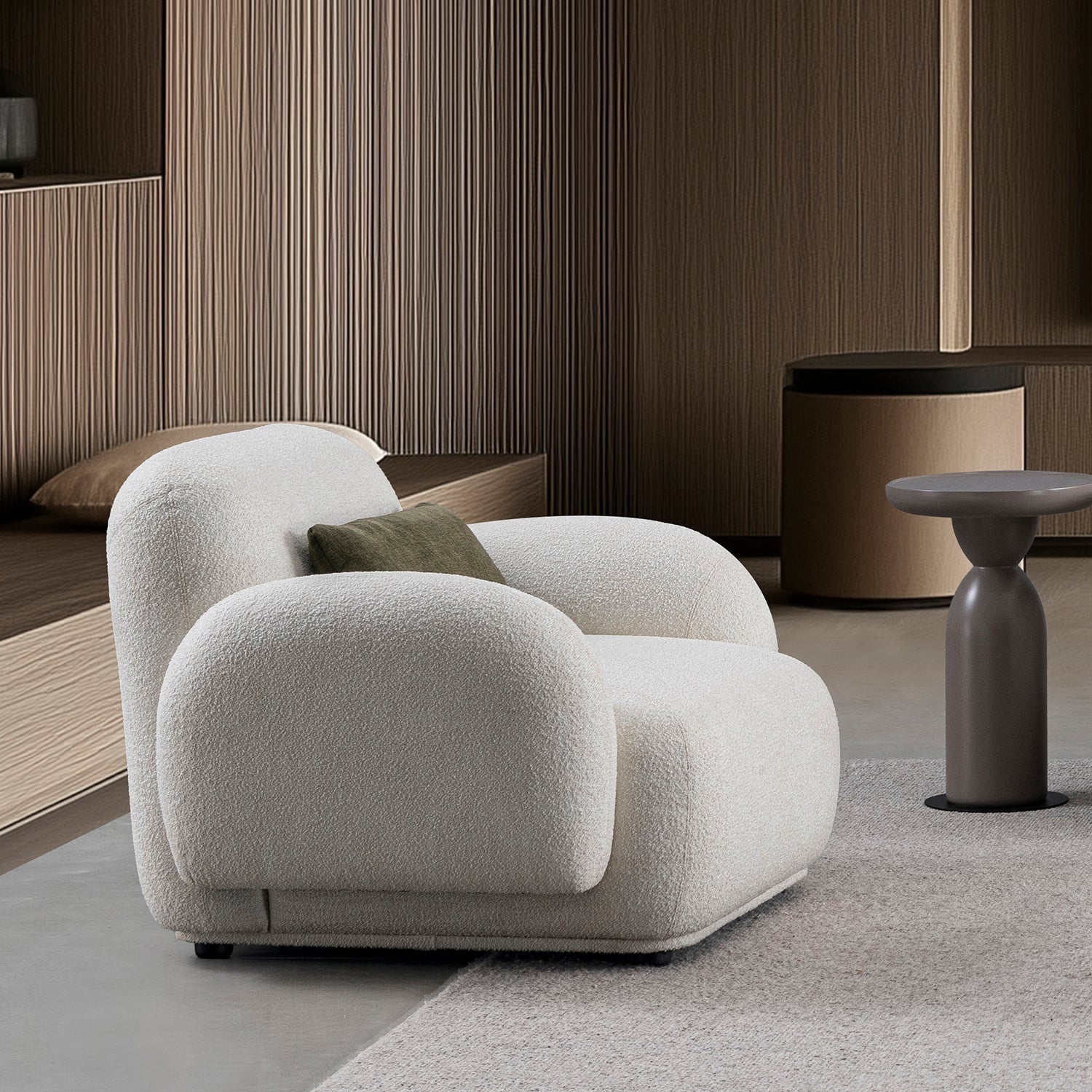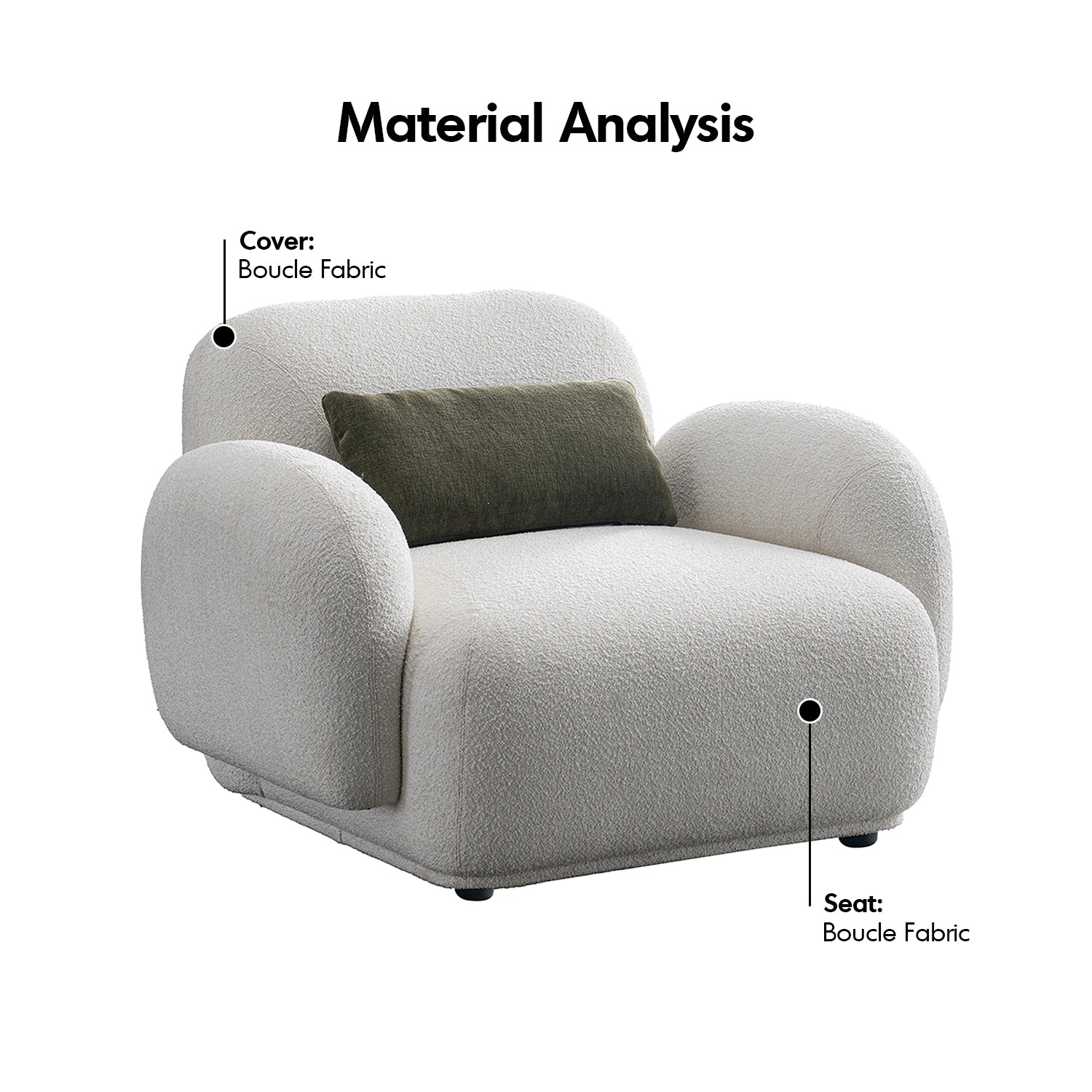 Cream Boucle Fabric 1 Seater Sofa PLUUM