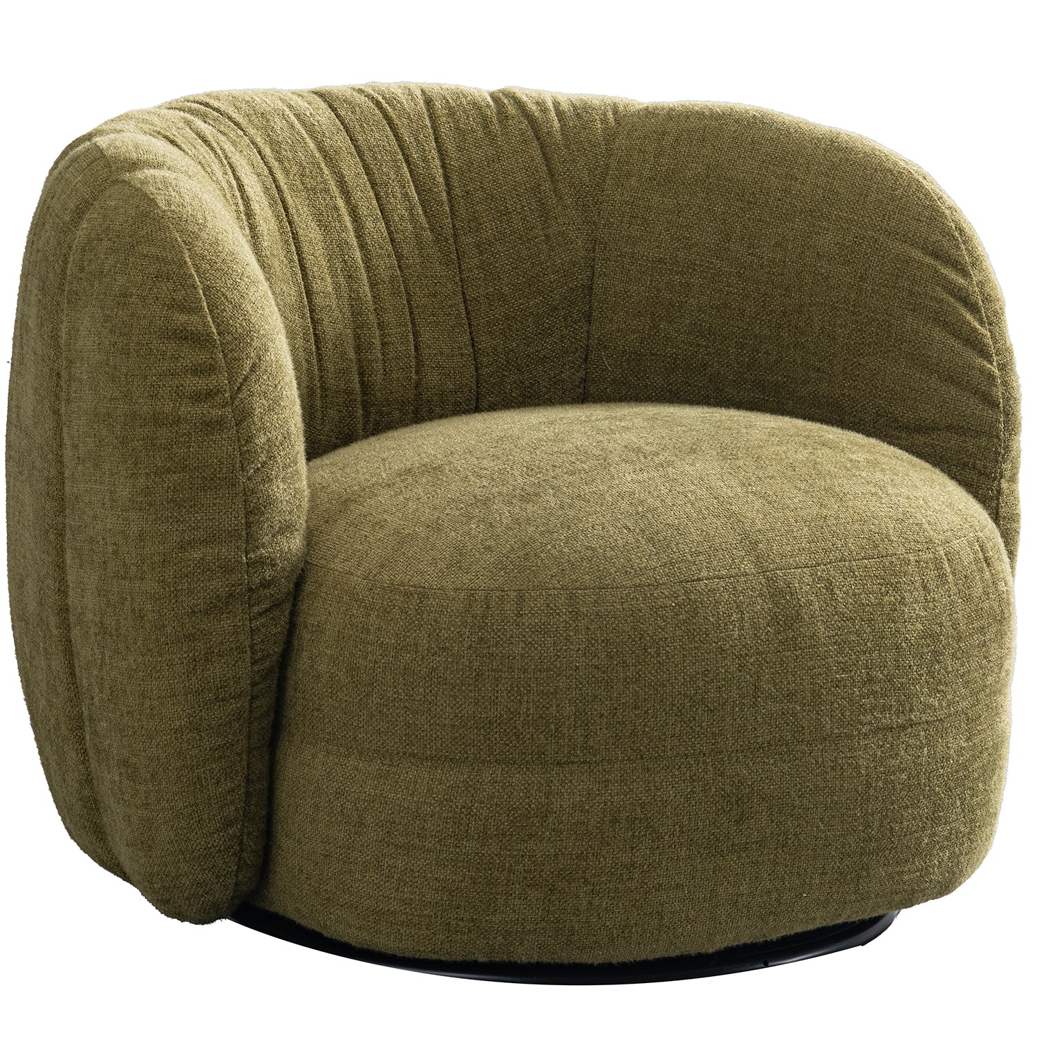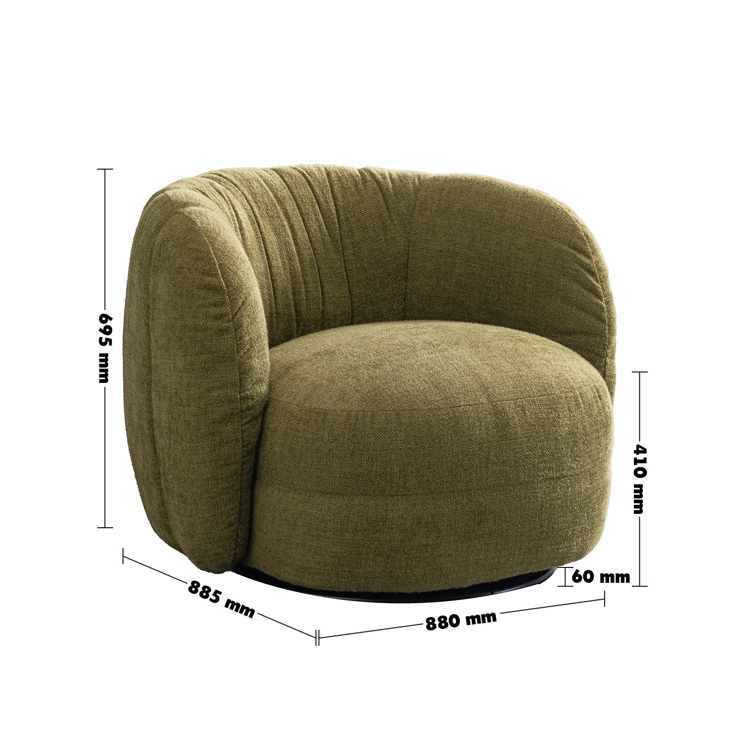 Experience cozy comfort with style. Cream Linen Fabric Revolving 1 Seater Sofa OLVI features linen fabric, a dark lime hue, and sculpted form—perfect for cream-toned modern interiors.