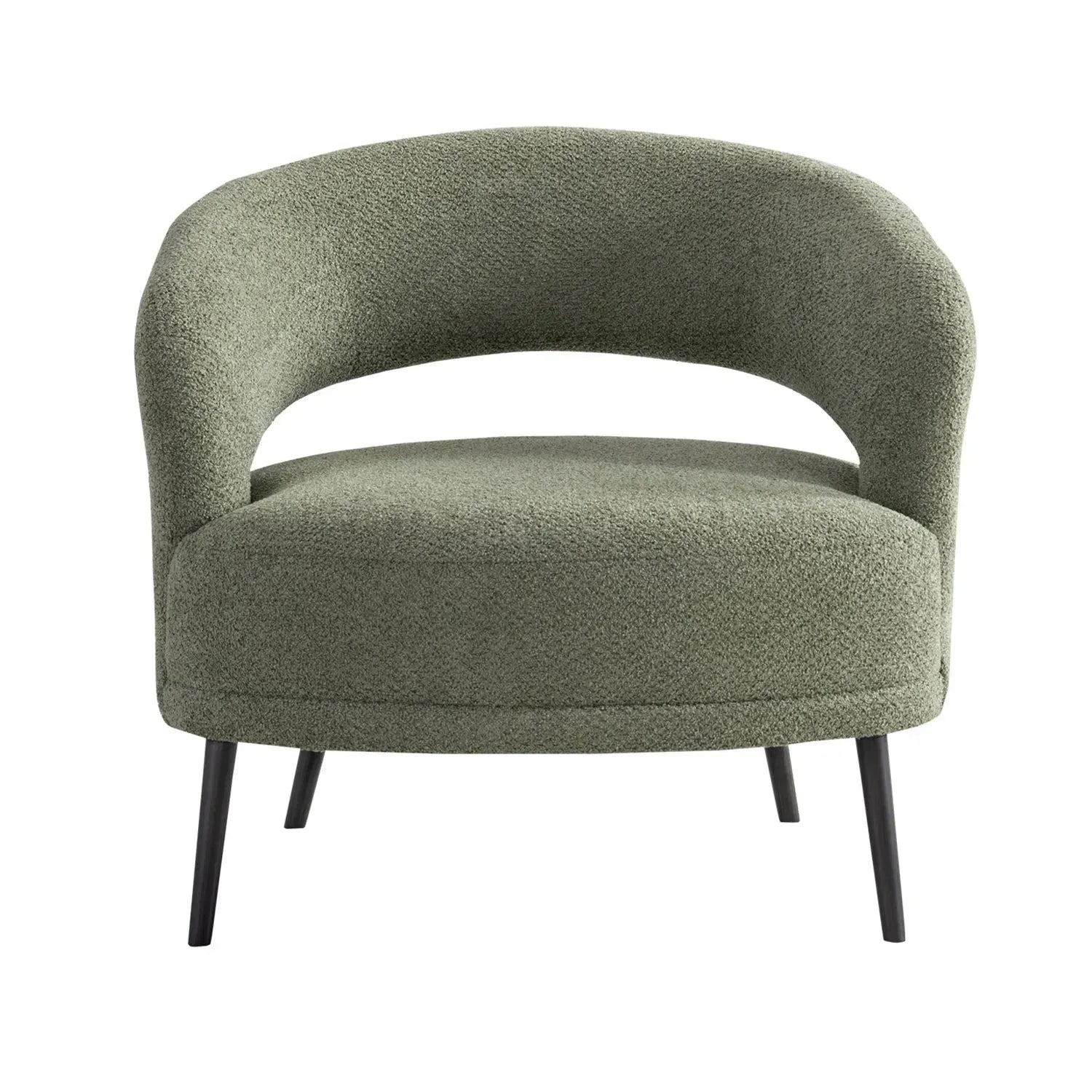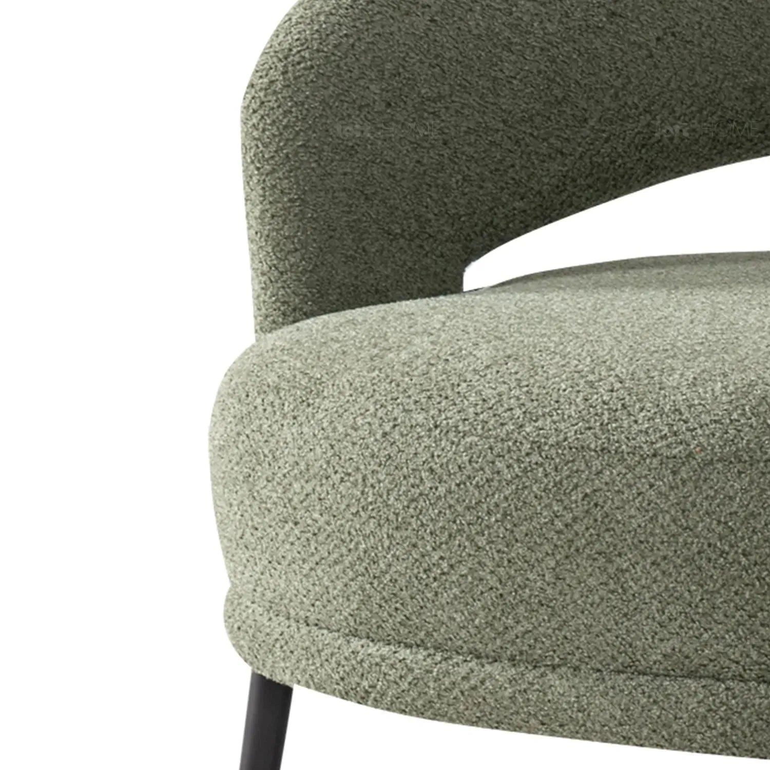 The Olive Green fabric and Black steel legs create a versatile color scheme, suitable for blending into various interior styles, from modern to traditional settings. |