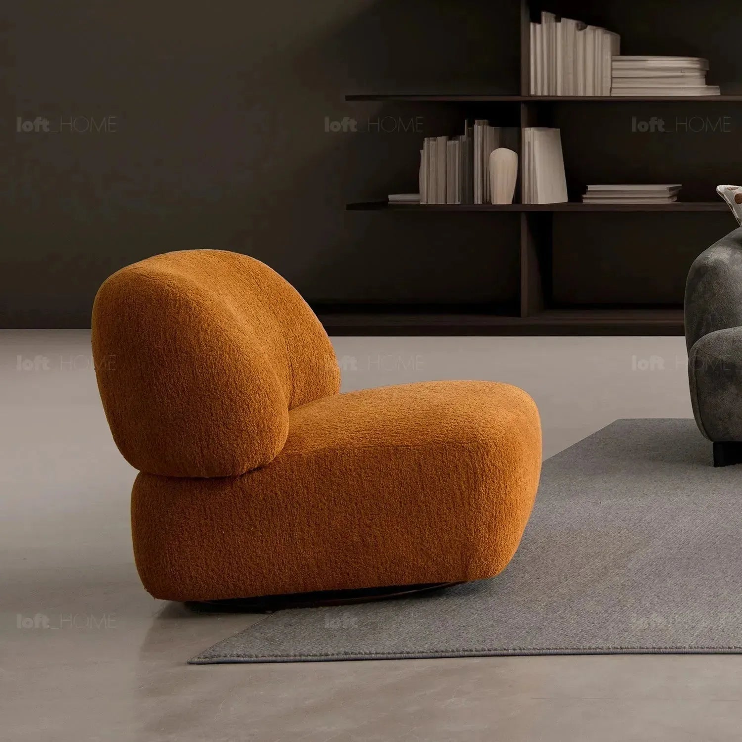 Experience durability and luxury with the Cream Sherpa Fabric Revolving 1 Seater Sofa VIGOR. Crafted with a durable larch wood frame and adorned in soft Sherpa fabric, it features a smooth revolving base for added functionality. Enjoy premium comfort in its modern and stylish design, paired with easy maintenance for effortless care.