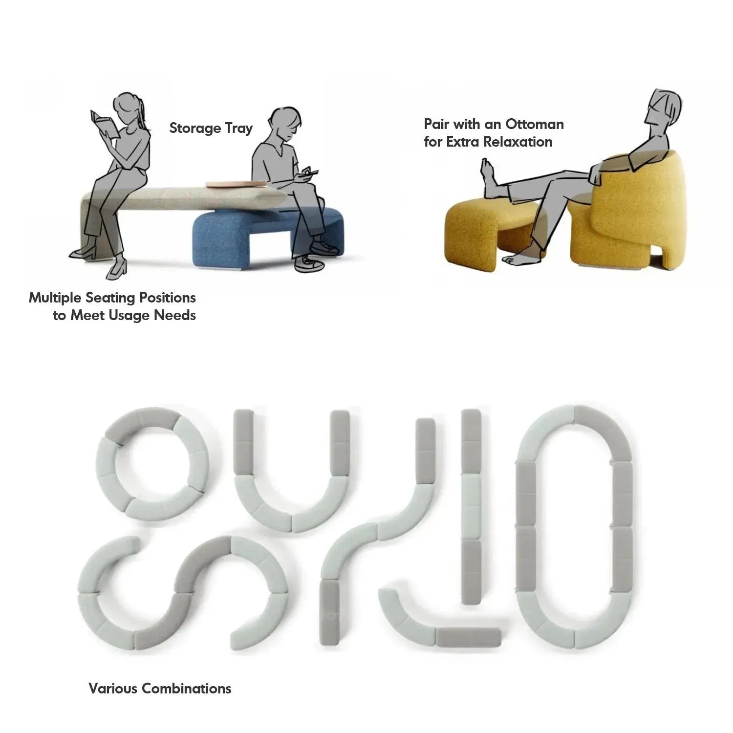 With an enveloping backrest, comfortable armrest curve, and a slightly arched seat, the integrated fold-down design offers multiple seating positions and versatile combinations. |