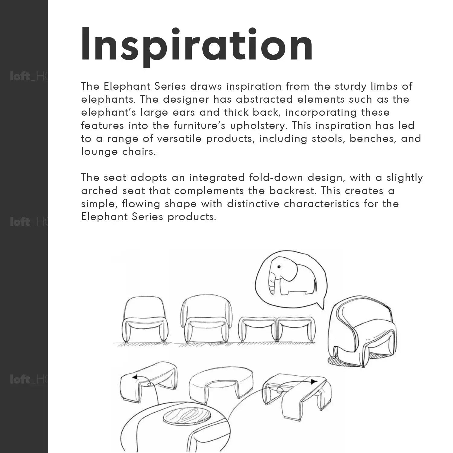 ELEPHANT Series features design elements inspired by the sturdy limbs and large ears of elephants, creating unique stools, benches, and lounge chairs. |