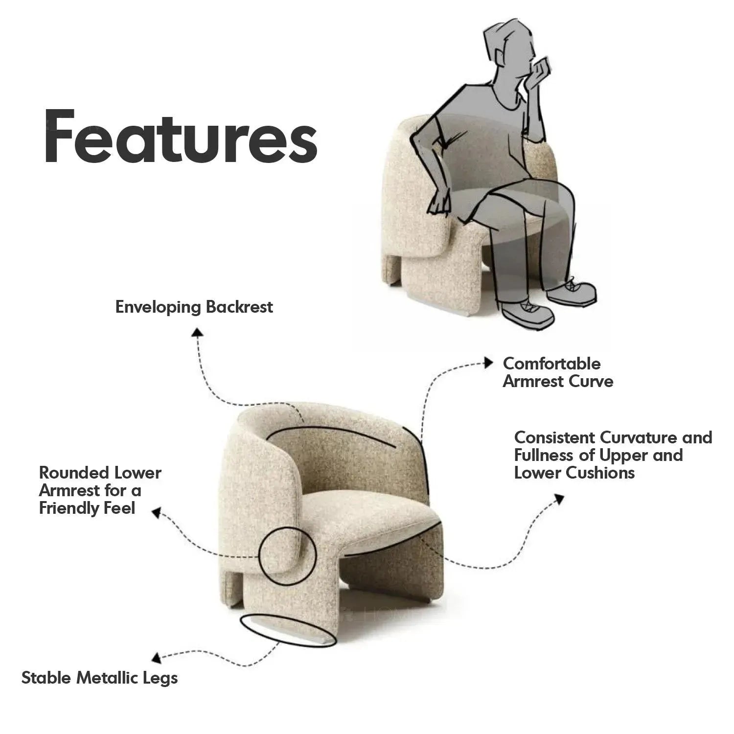 Minimalist Fabric 1 Seater Sofa ELEPHANT combines elephant-inspired design with high-quality materials and superior craftsmanship. Featuring an enveloping backrest, stable metallic legs, and versatile seating options, it enhances any space with comfort and style.