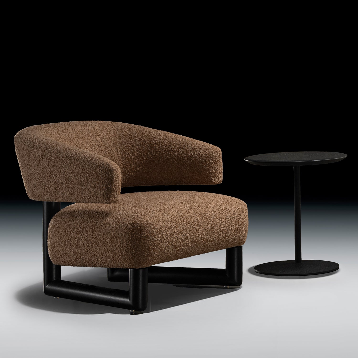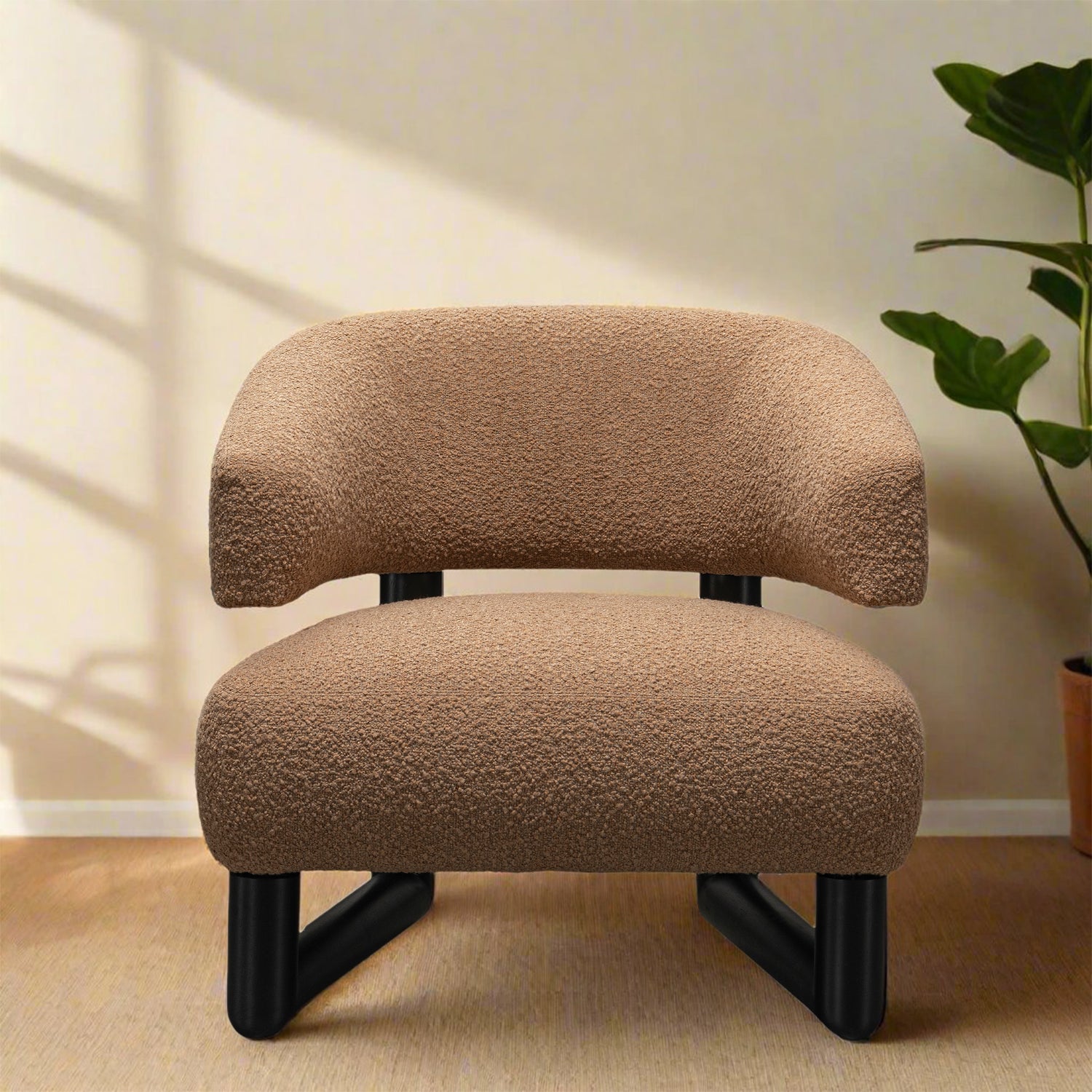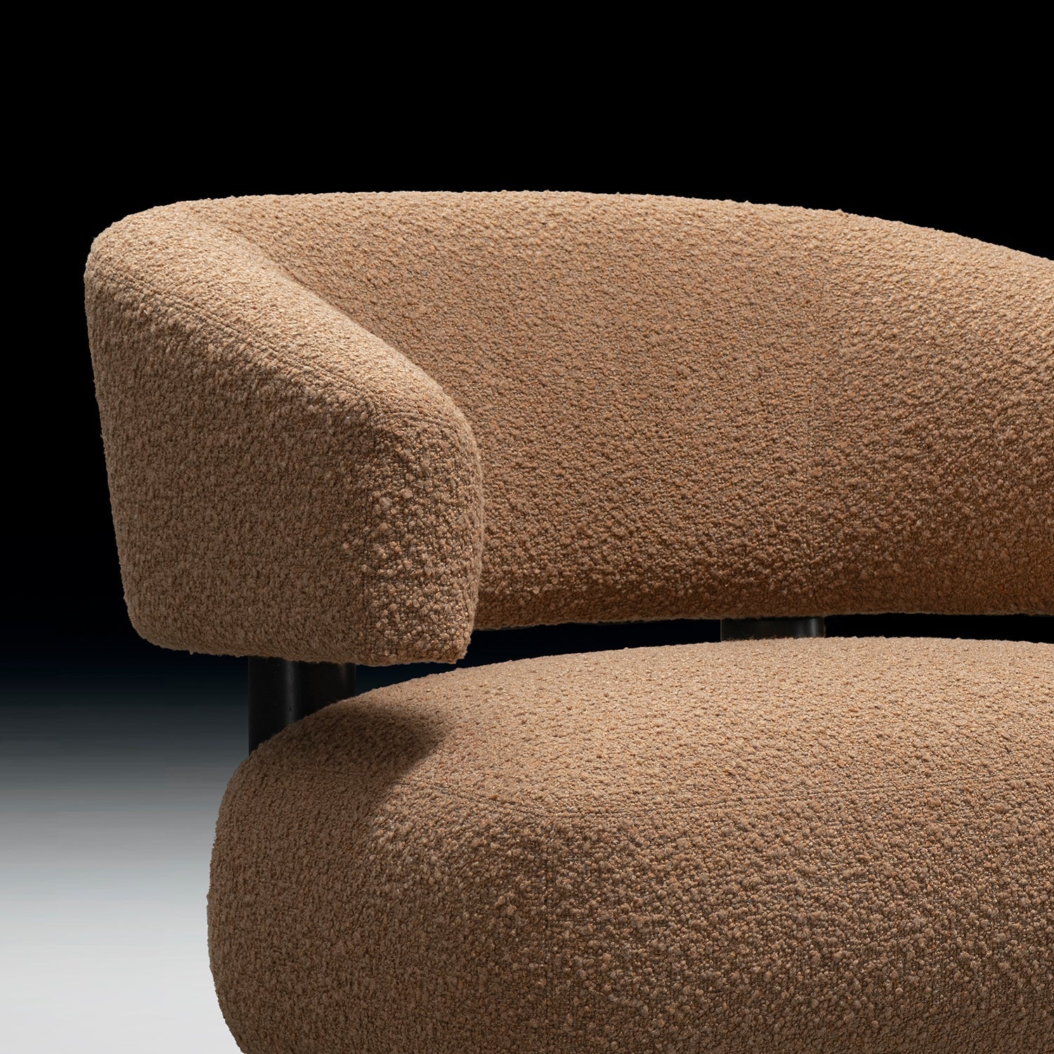 The curved silhouette and boucle fabric add a luxurious, contemporary aesthetic to any space.