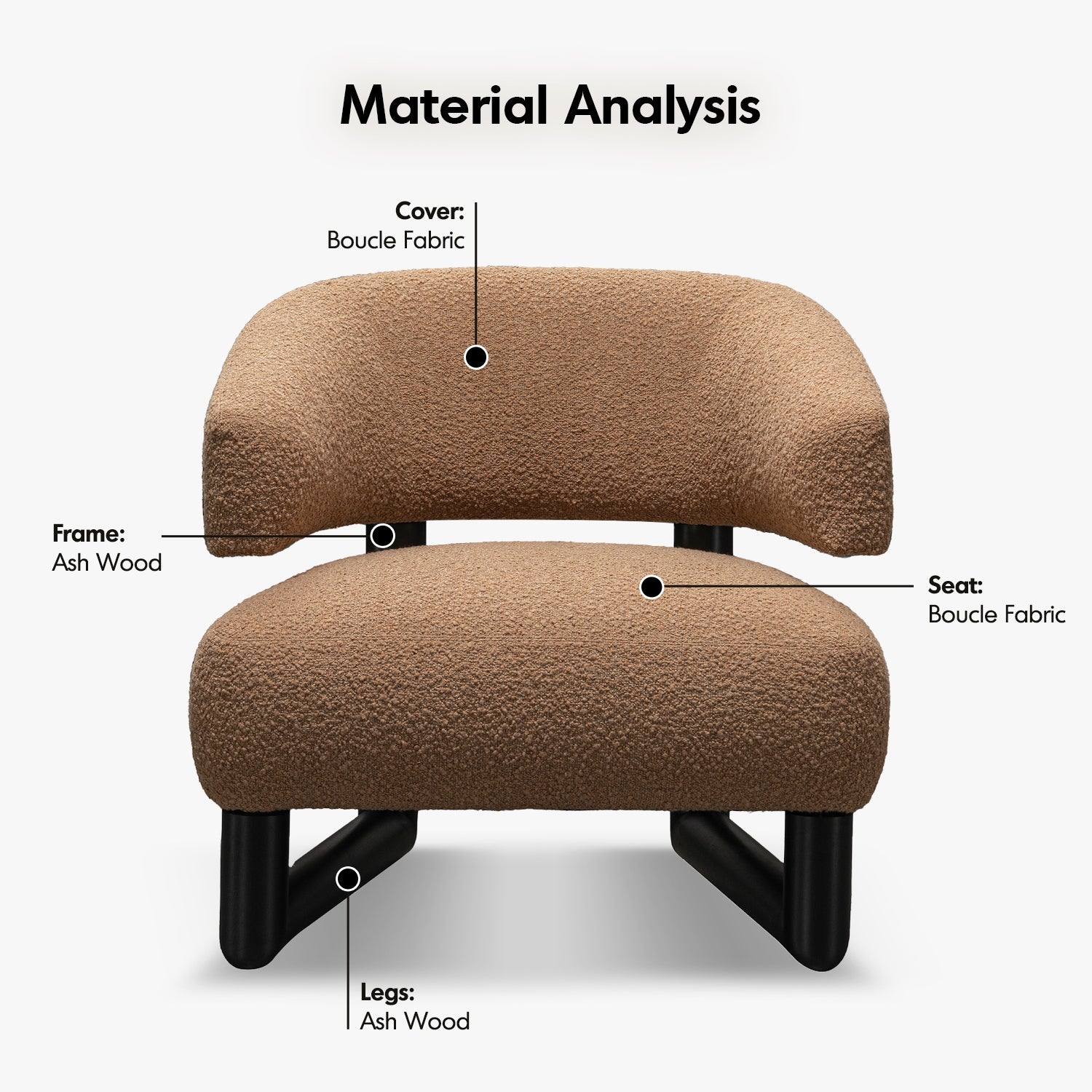 Boucle fabric enhances tactile appeal, bringing warmth and sophistication to your seating experience.