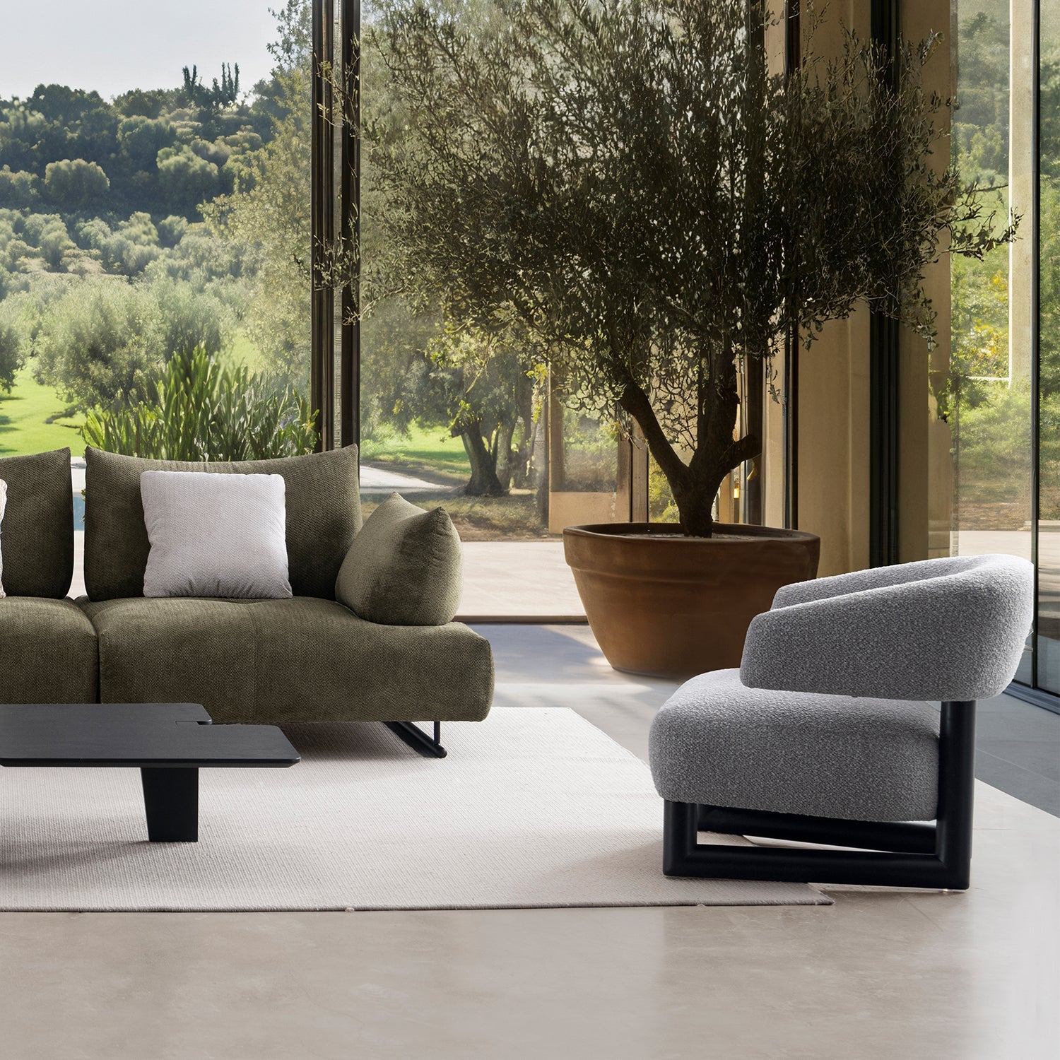 The enveloping shape gently supports the back, making it ideal for lounging. |
